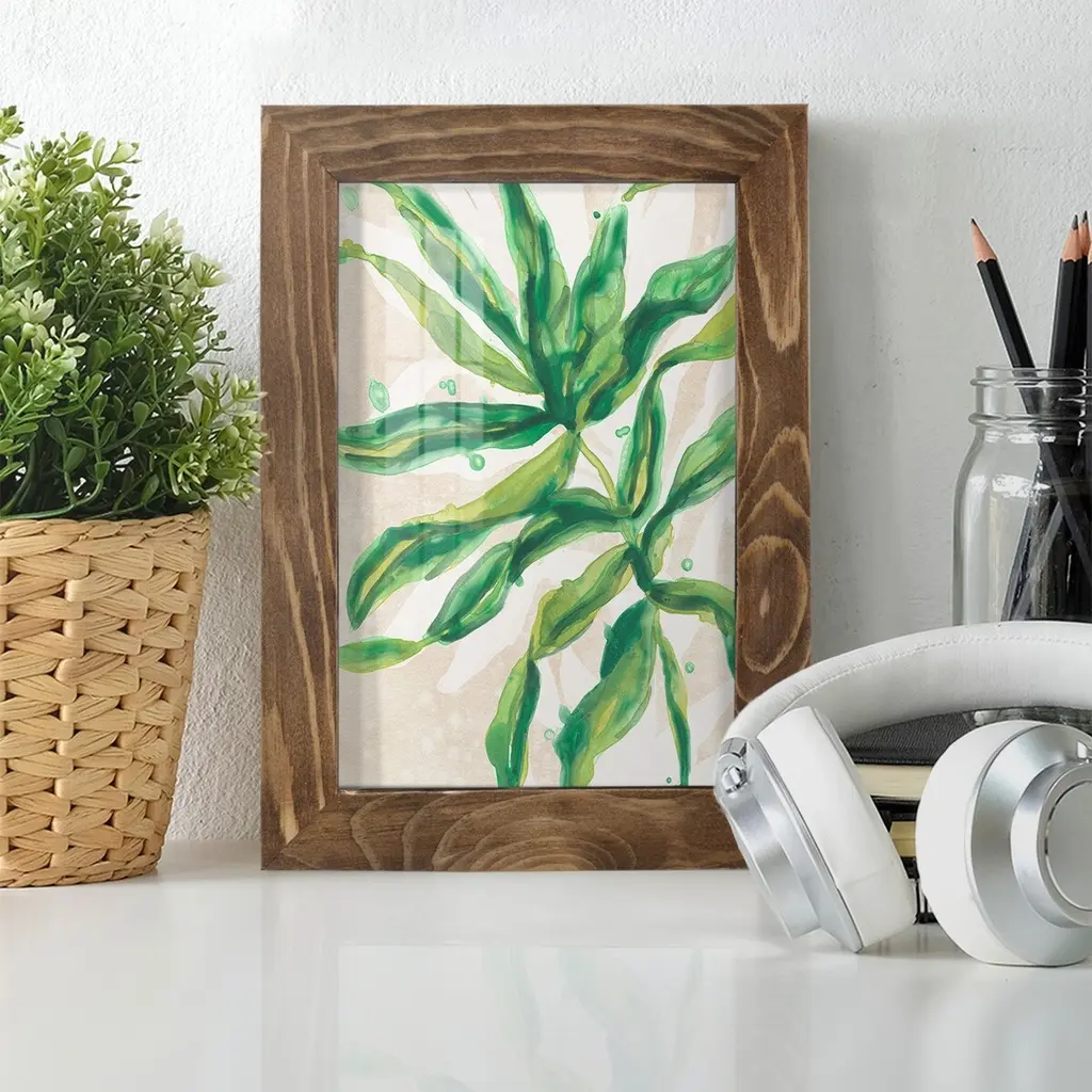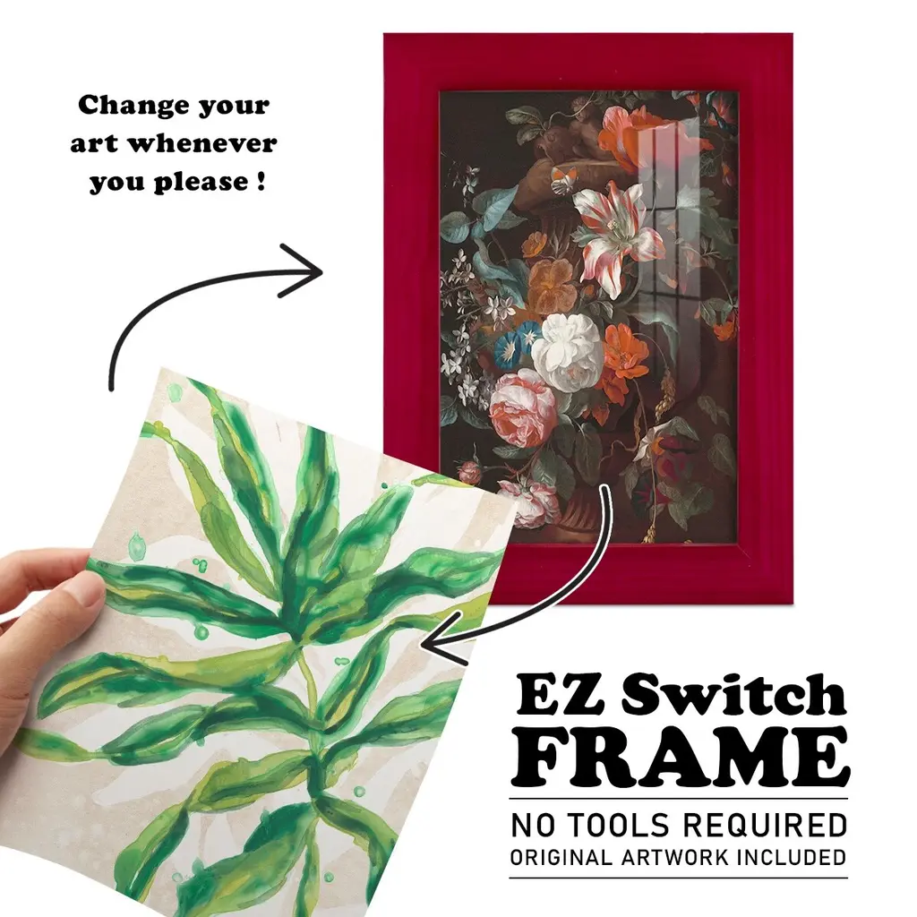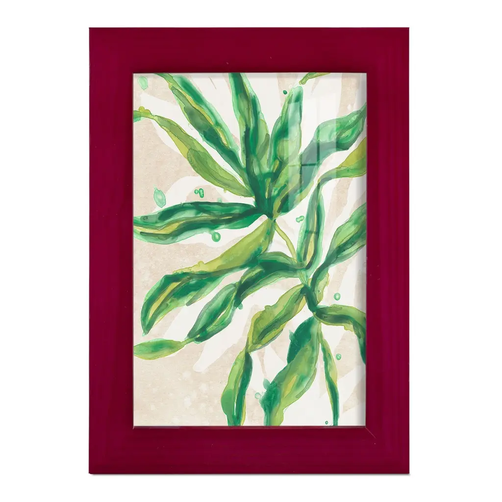 Parchment Palms II -EZ SWITCH Framed Print w/glass-Cherry Red A delightful, framed print. Featuring a solid wood frame with real wood glass. This premium print is giclee quality. In addition, every frame features a removable back and table top stand. This allows you to change your art in the future or to just stand the art on a table for a new look. We are sure you'll enjoy our new series of EZ SWITCH Framed Art. Solid Wood Frame Real Glass Removable / Replaceable Art Built in Tabletop Stand Sizes range from 4x6 up to 12x15 - buy just one or pair them up as sets as you see fit.