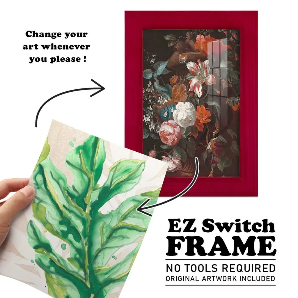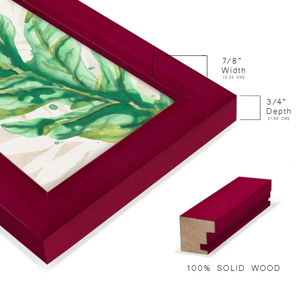 Parchment Palms IV -EZ SWITCH Framed Print w/glass-Cherry Red A delightful, framed print. Featuring a solid wood frame with real wood glass. This premium print is giclee quality. In addition, every frame features a removable back and table top stand. This allows you to change your art in the future or to just stand the art on a table for a new look. We are sure you'll enjoy our new series of EZ SWITCH Framed Art. Solid Wood Frame Real Glass Removable / Replaceable Art Built in Tabletop Stand Sizes range from 4x6 up to 12x15 - buy just one or pair them up as sets as you see fit.