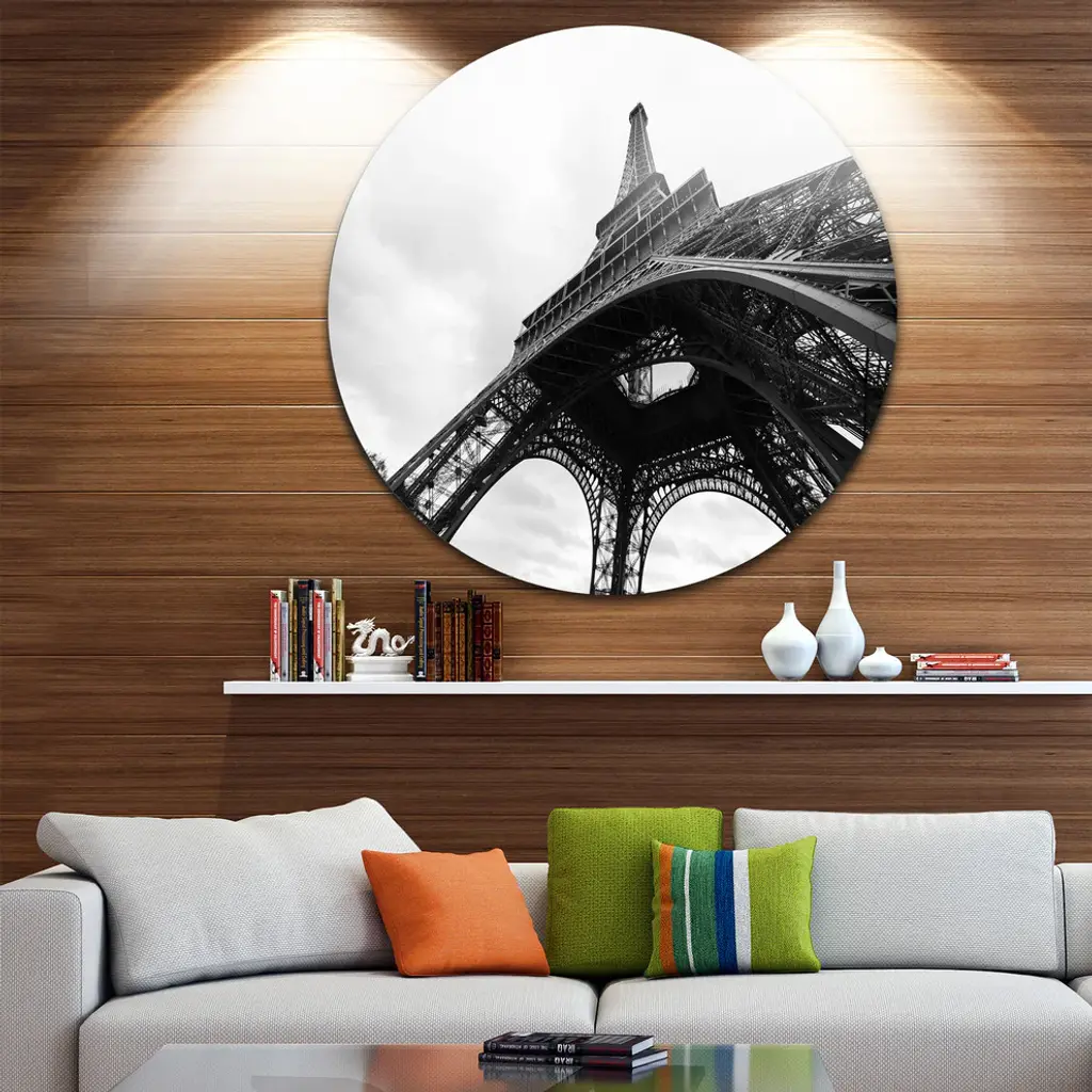 Paris Eiffel Tower Black And White Side View, Disc Metal Artwork, 23"