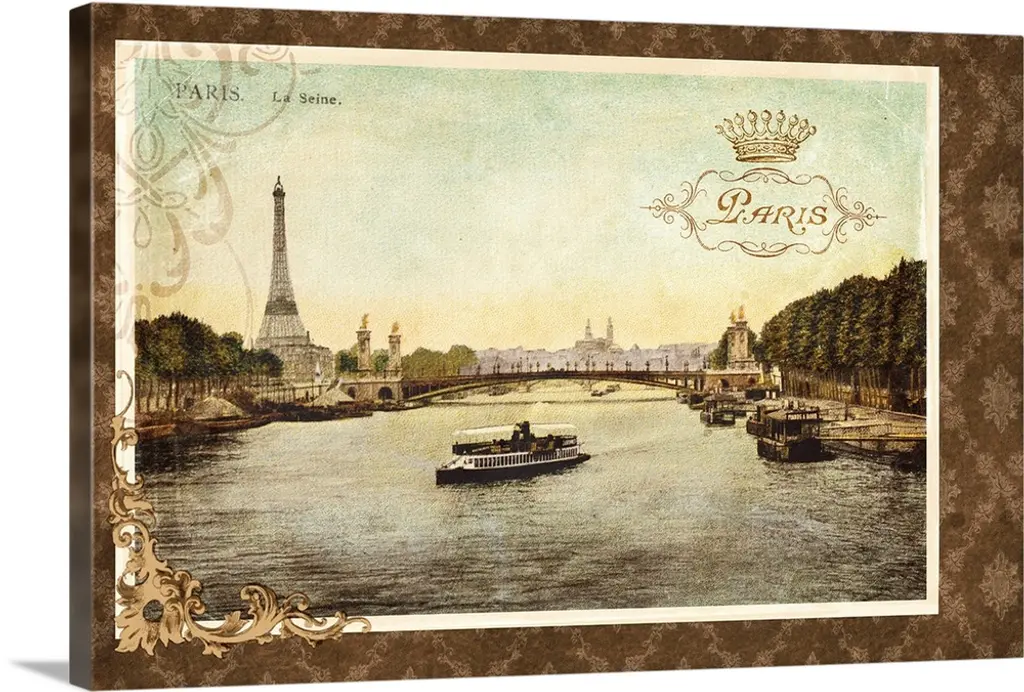 Paris Eiffel Tower Boat Art Print, 12" X 9.875"