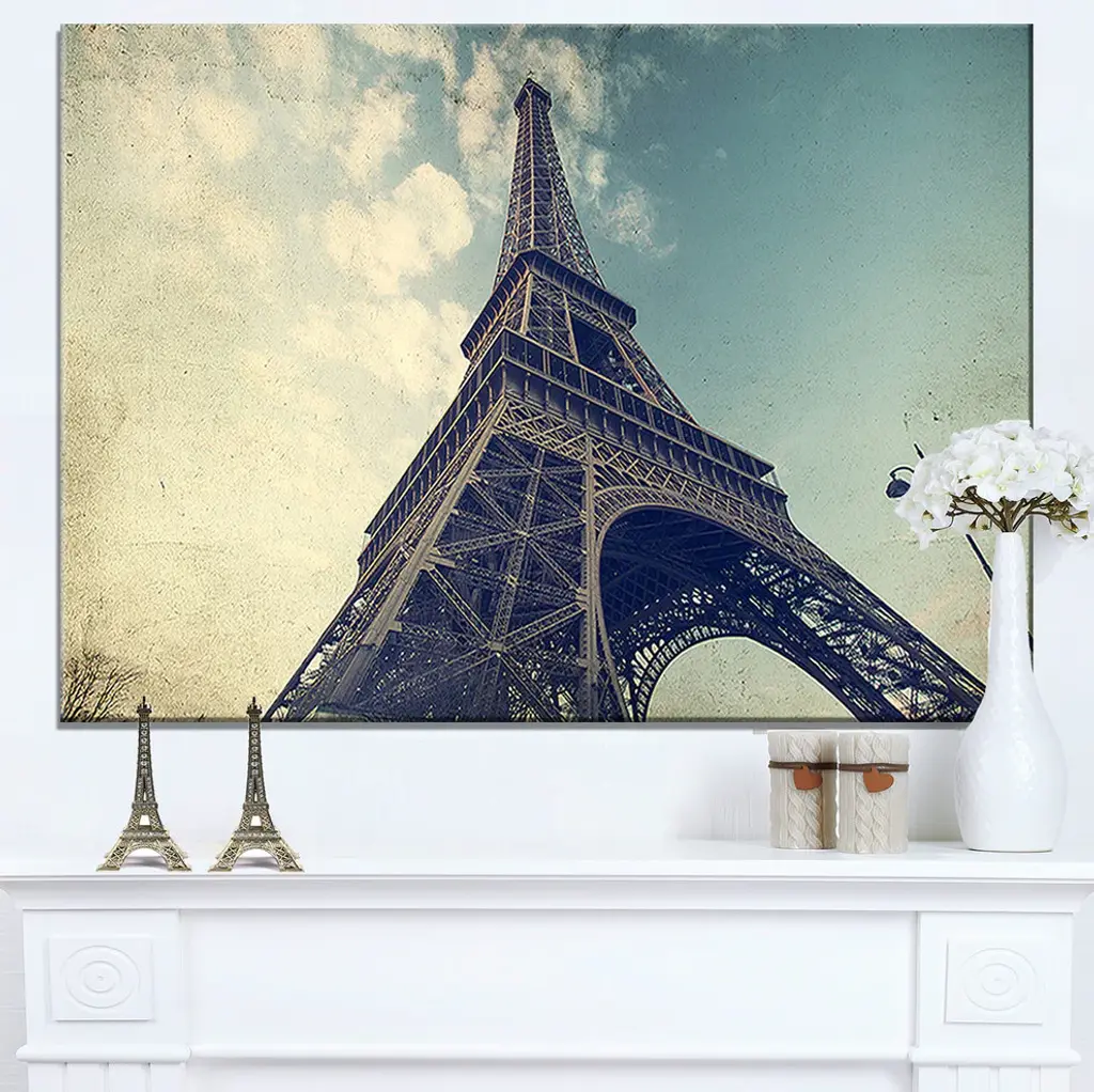 The Paris Eiffel Tower Vintage View from Ground canvas art print is sure to make an impression on anyone who sees it. This artwork is gallery wrapped around a 1-inch solid wood frame and arrives carefully packaged and entirely ready to hang on the wall. Design Art only uses the highest resolution and pigments to ensure a crisp colorful print that is never faded or pixelated. This artwork is sure to be a conversation starter in any home or office.