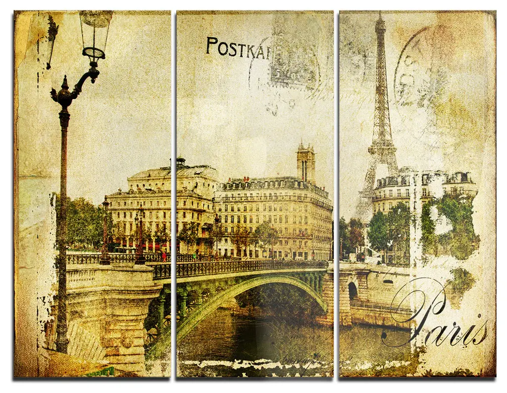 "Paris Panoramic View" Watercolor Metal Wall Art, 3 Panels, 36"x28"