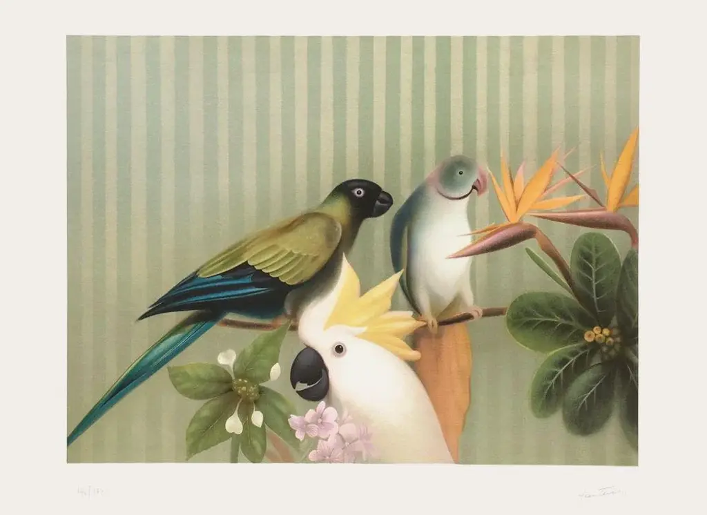 Our Parrots Beaded Wall Art features a pair of preening island-flockers in vivid, dimensional color. A trés chic tropical treat for your wall. We collaborated with an artisanal workshop in India where a master beader imbued our clean graphic designs with craftsmanship and soul. Each artwork is hand-beaded on linen ground and takes nearly 100 hours to create. Beads of varying heights and patterns within patterns create a sense of depth and dimension. The result is part pop art, part textile triumph.