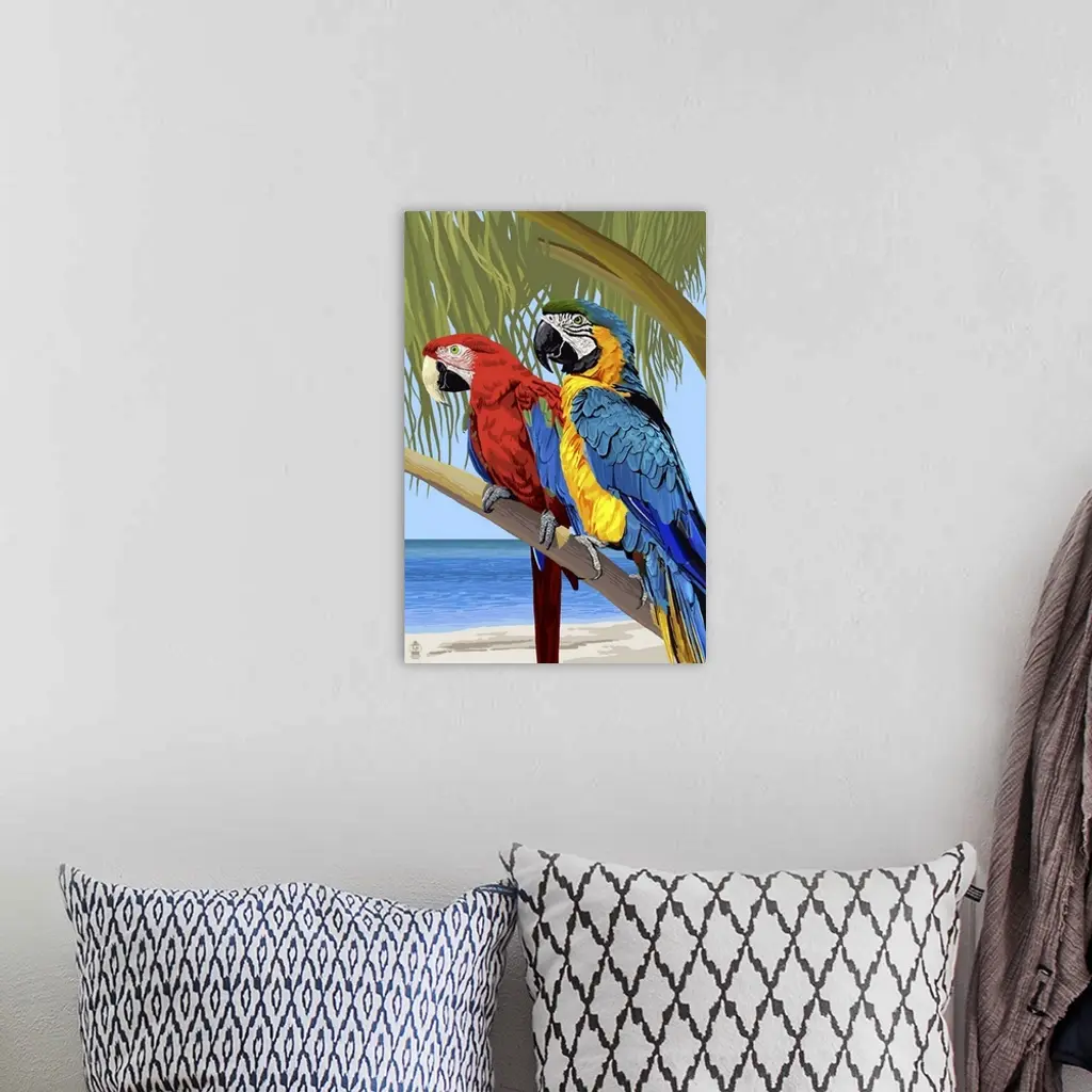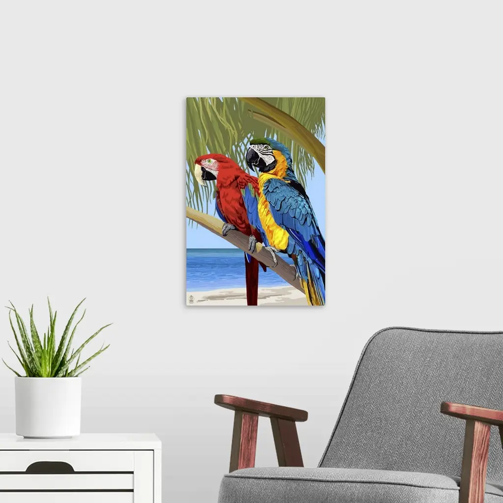 Parrots: Retro Poster Art wall art for home and office decor. Discover canvas art prints, photos, mural, big canvas art and framed wall art in GreatBigCanvas.com's varied collections.