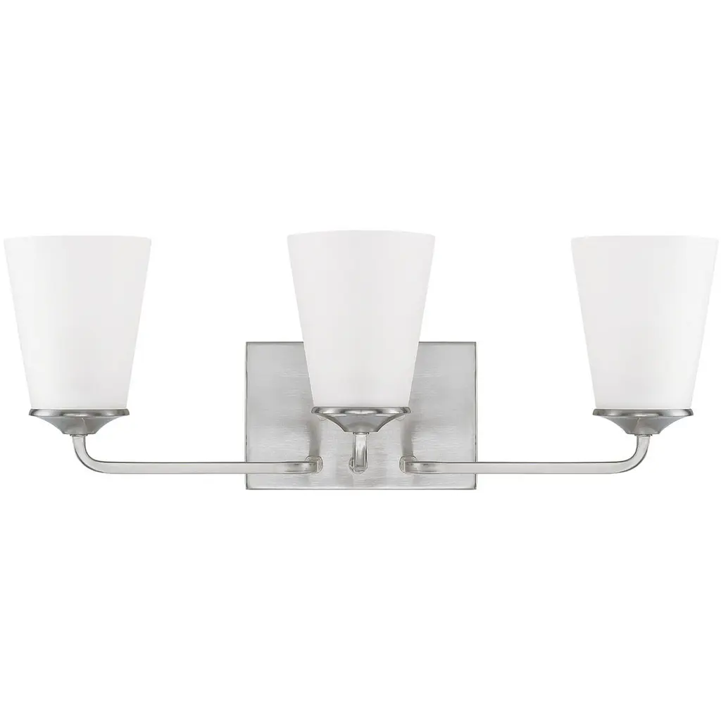 The Parsons Studio 3 Light Bath Light features clear glass exteriors with interior-etched white glass shades. Available in a brushed nickel finished body, the Parsons Studio 3 Light is a perfect addition to the bathroom.