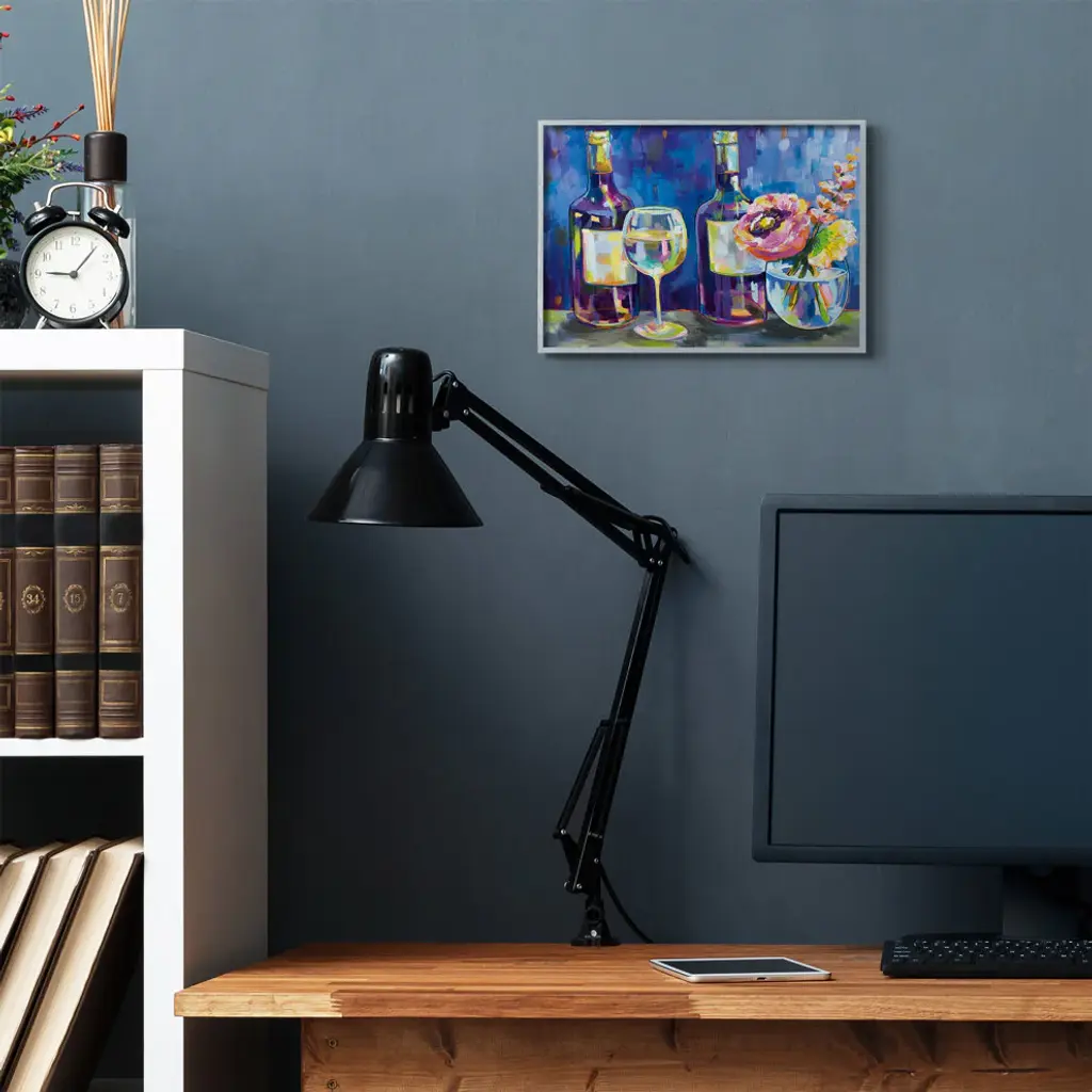 Party Drinks And Flowers Blue Purple Modern Painting, 11"x14"
