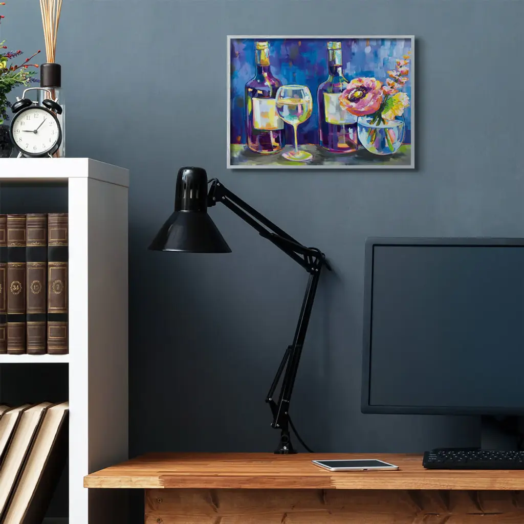 Party Drinks And Flowers Blue Purple Modern Painting, 16"x20"
