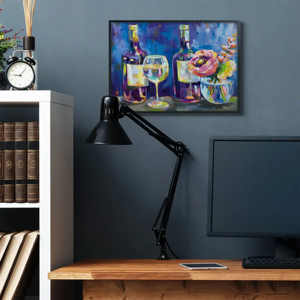 Party Drinks And Flowers Blue Purple Modern Painting, 24"x30"
