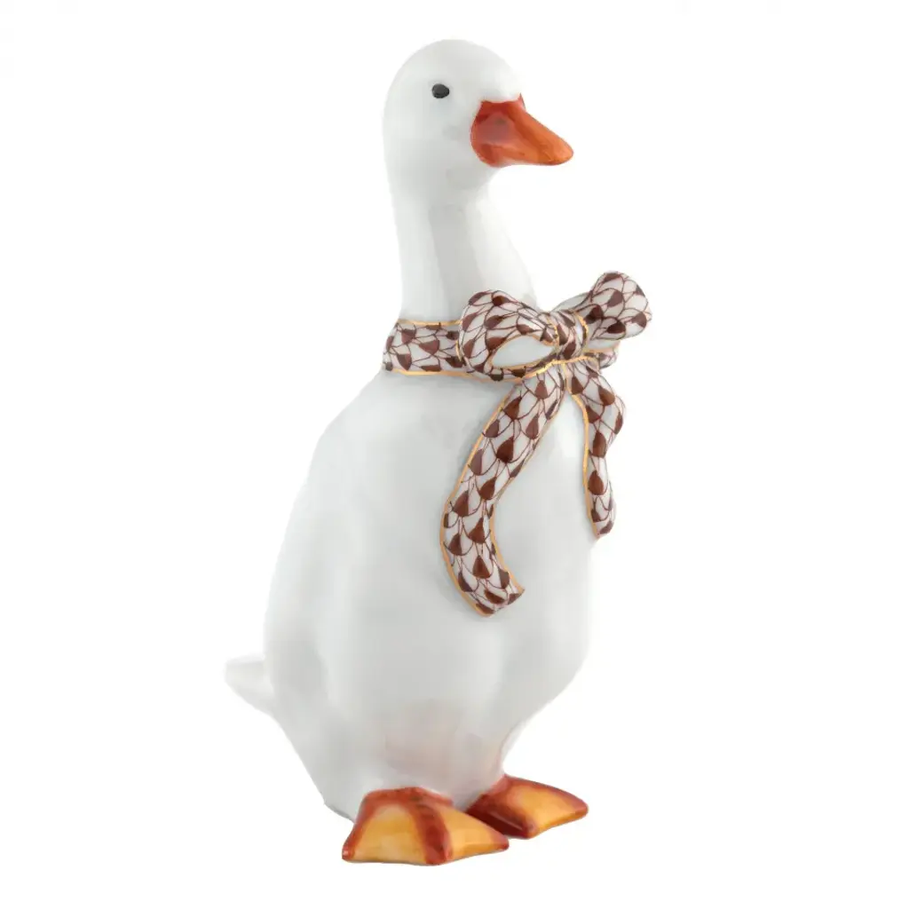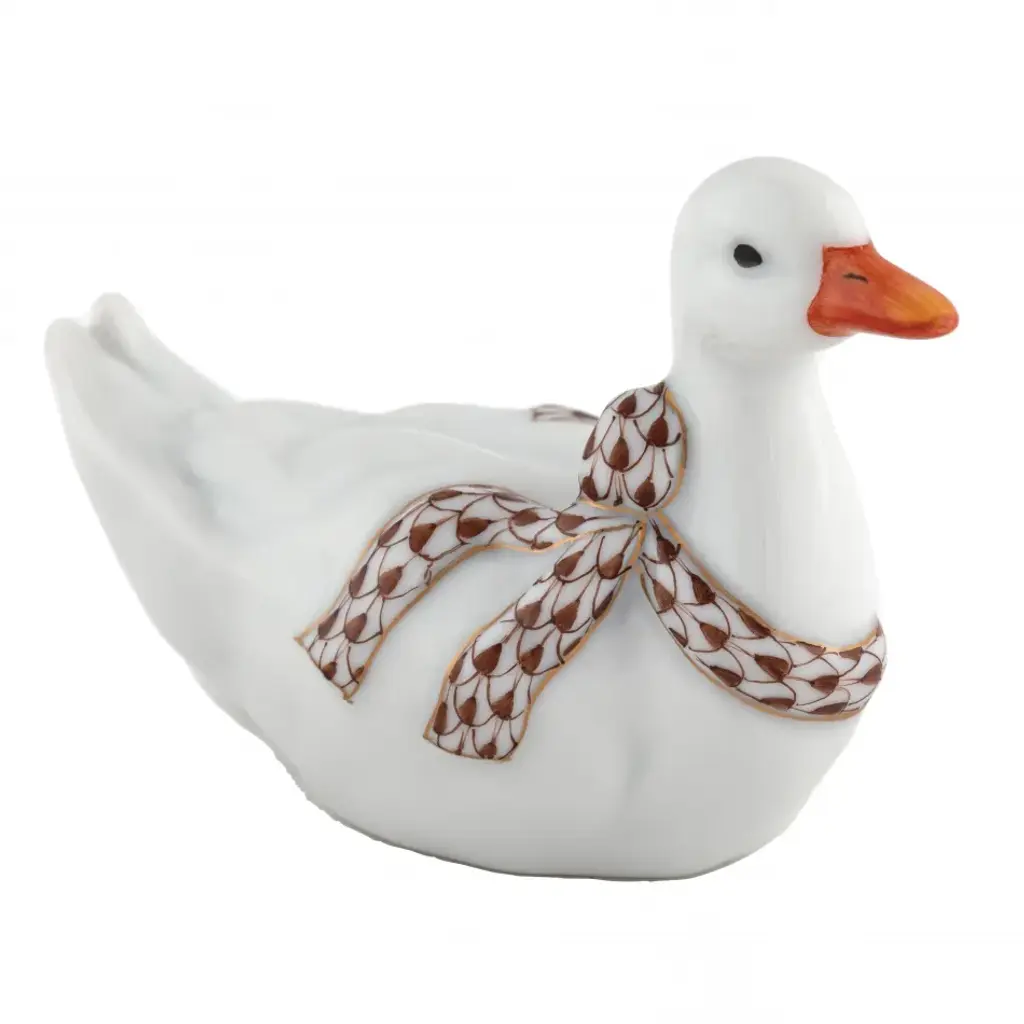 Endearing animals meek and bold, large and small, demure and majestic eagerly await the chance to melt your heart and warm your home. Each is brought to life by the skilled hands of artisans crafting and painting these charming porcelain creatures. The famous fishnet décor adorning many of the animals took form in 1858 when a Herend painter became inspired by a fishscale design he saw on a Chinese porcelain plate and painted a similar pattern onto a rooster figurine to imitate feathers. The rest is history, with the fishnet design now a Herend signature prized worldwide. Now the biggest porcelain manufactory in Europe, Herend was founded in 1826 to produce earthenware in the small Hungarian village for which it was named. At the time, Hungary was flooded with low-cost pottery, but in 1839, Mor Fischer became the Manufactory’s new owner and he decided to focus on producing dinnerware replacement pieces for Europe’s royal families to complement their valuable porcelain patterns from Germany and the Far East. As his client base grew, Fischer commissioned his artists to begin designing dinnerware patterns of their own. Queen Victoria’s 1851 purchase of a large set for Windsor Castle was a milestone, setting the stage for aristocrats throughout Europe to clamor for Herend in their estates. In the 1850s, Herend added meticulously-crafted figurines to its creations. Herend’s trademark fishnet pattern, which is widely recognized and prized as Herend’s signature design, started in 1858 when an artist who was intrigued with a Chinese plate’s fish scale design painted it onto a rooster figurine to imitate feathers.