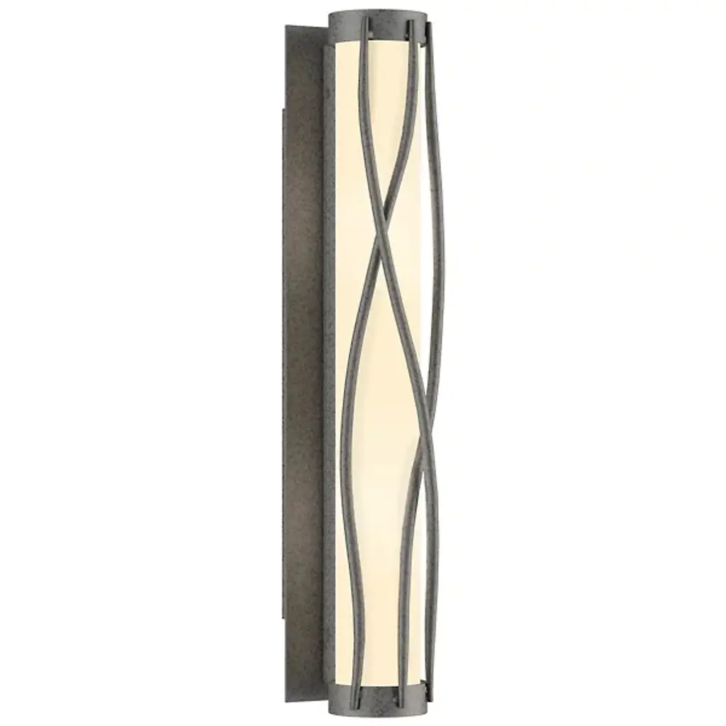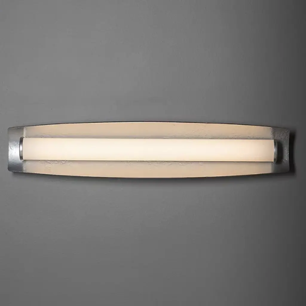 The Passage LED Vanity Light by Hubbardton Forge offers a sophisticated and modern touch to your home, elevating your space with both style and functionality. Handcrafted in Vermont, this sleek wall sconce features a refined linear shape complemented by a smooth cylinder shade, beautifully blending durable steel and glass elements. Its understated elegance makes it perfect for versatile use in bathrooms, living rooms, or hallways, effortlessly enhancing any decor. Equipped with integrated LED technology, it provides efficient, bright illumination while maintaining a minimalist, sleek design that adds sophistication to any room.