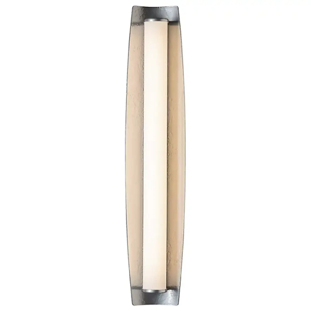 The Passage LED Vanity Light by Hubbardton Forge offers a sophisticated and modern touch to your home, elevating your space with both style and functionality. Handcrafted in Vermont, this sleek wall sconce features a refined linear shape complemented by a smooth cylinder shade, beautifully blending durable steel and glass elements. Its understated elegance makes it perfect for versatile use in bathrooms, living rooms, or hallways, effortlessly enhancing any decor. Equipped with integrated LED technology, it provides efficient, bright illumination while maintaining a minimalist, sleek design that adds sophistication to any room.