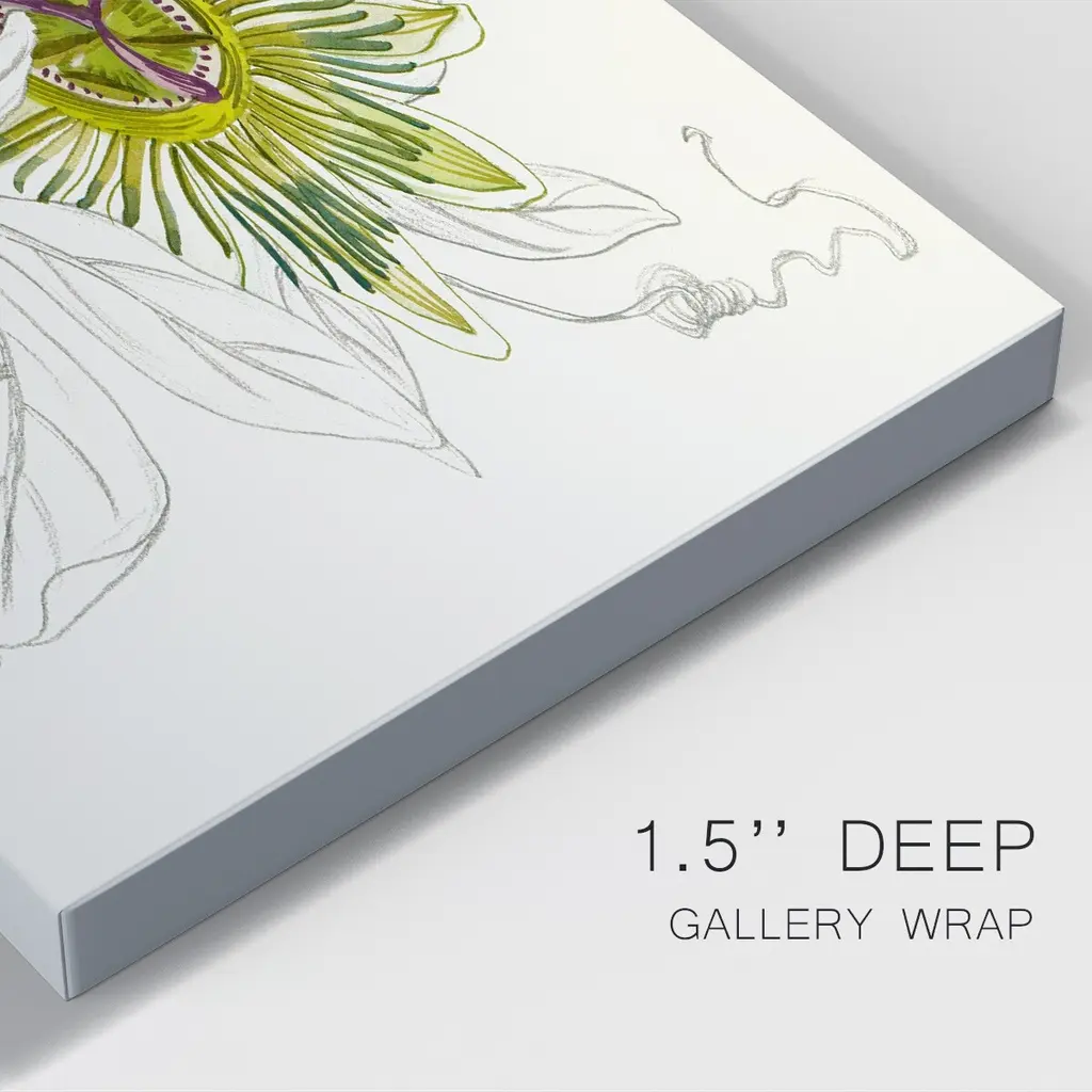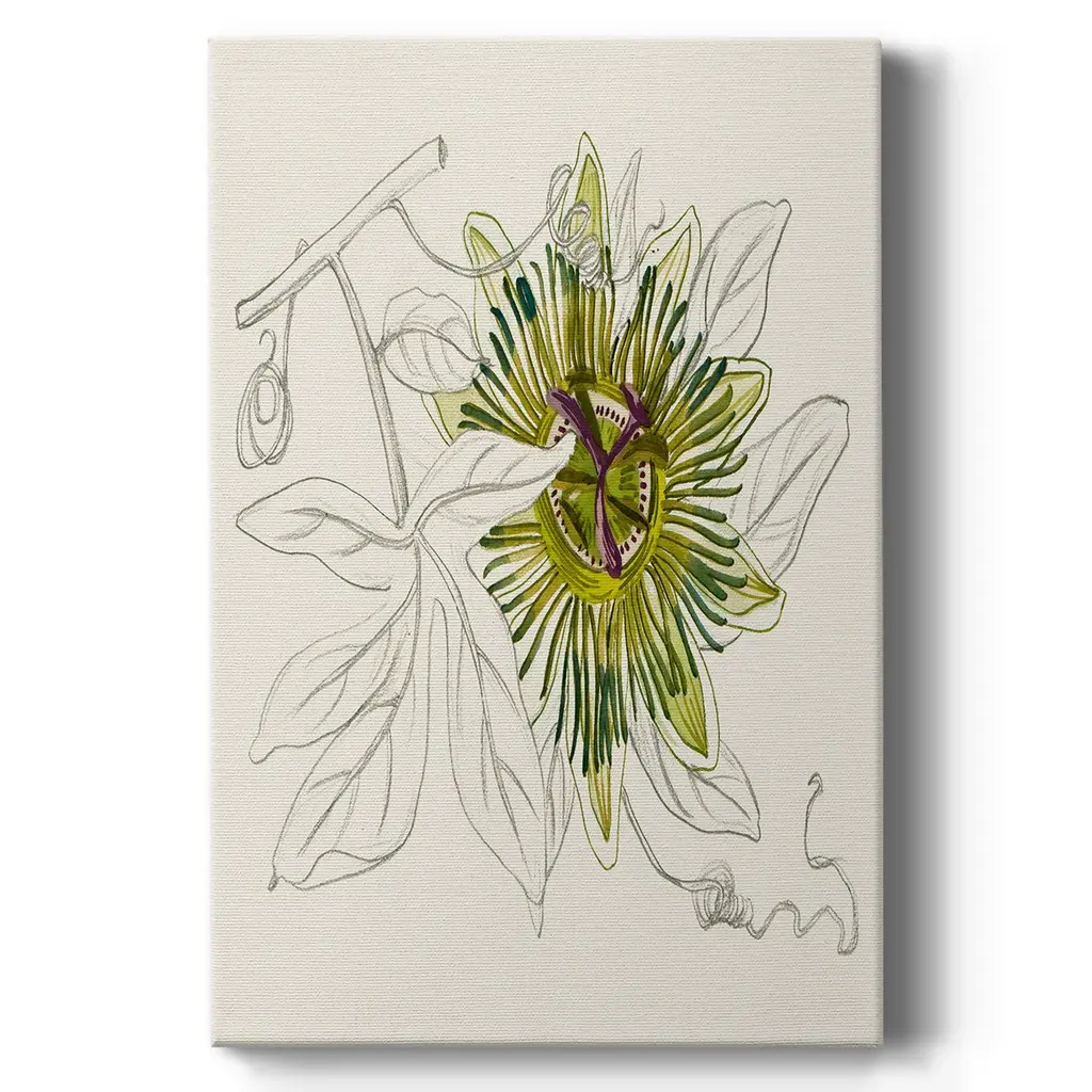 Passionflower IV Premium Gallery Wrapped Canvas - Ready to Hang A premium hand stretched gallery wrapped canvas print created to last. Featuring a beveled a solid wood stretcher bar, each piece comes ready to hand 6 SIZES AVAILABLE 8''X12'' - Overall Size 12''X18'' - Overall Size 18''X27'' - Overall Size 24''x36'' - Overall Size 32''x48'' - Overall Size 40''x60'' - Overall Size Each piece is made to order. Built to Last Each piece comes ready to hang Solid wood stretcher Fade and Water resistant Made domestically