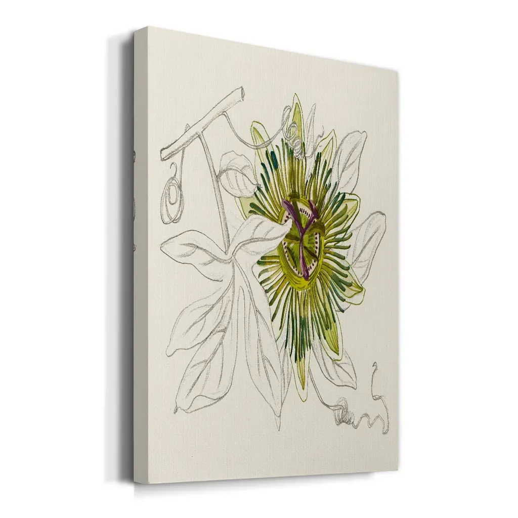 Passionflower IV Premium Gallery Wrapped Canvas - Ready to Hang A premium hand stretched gallery wrapped canvas print created to last. Featuring a beveled a solid wood stretcher bar, each piece comes ready to hand 6 SIZES AVAILABLE 8''X12'' - Overall Size 12''X18'' - Overall Size 18''X27'' - Overall Size 24''x36'' - Overall Size 32''x48'' - Overall Size 40''x60'' - Overall Size Each piece is made to order. Built to Last Each piece comes ready to hang Solid wood stretcher Fade and Water resistant Made domestically
