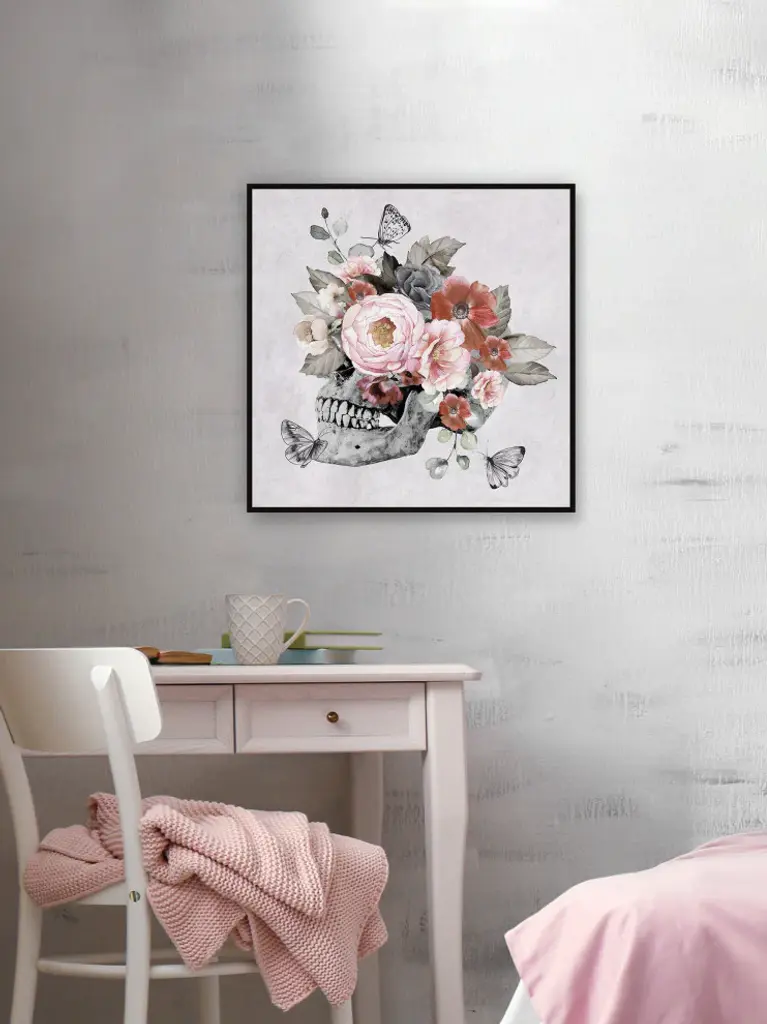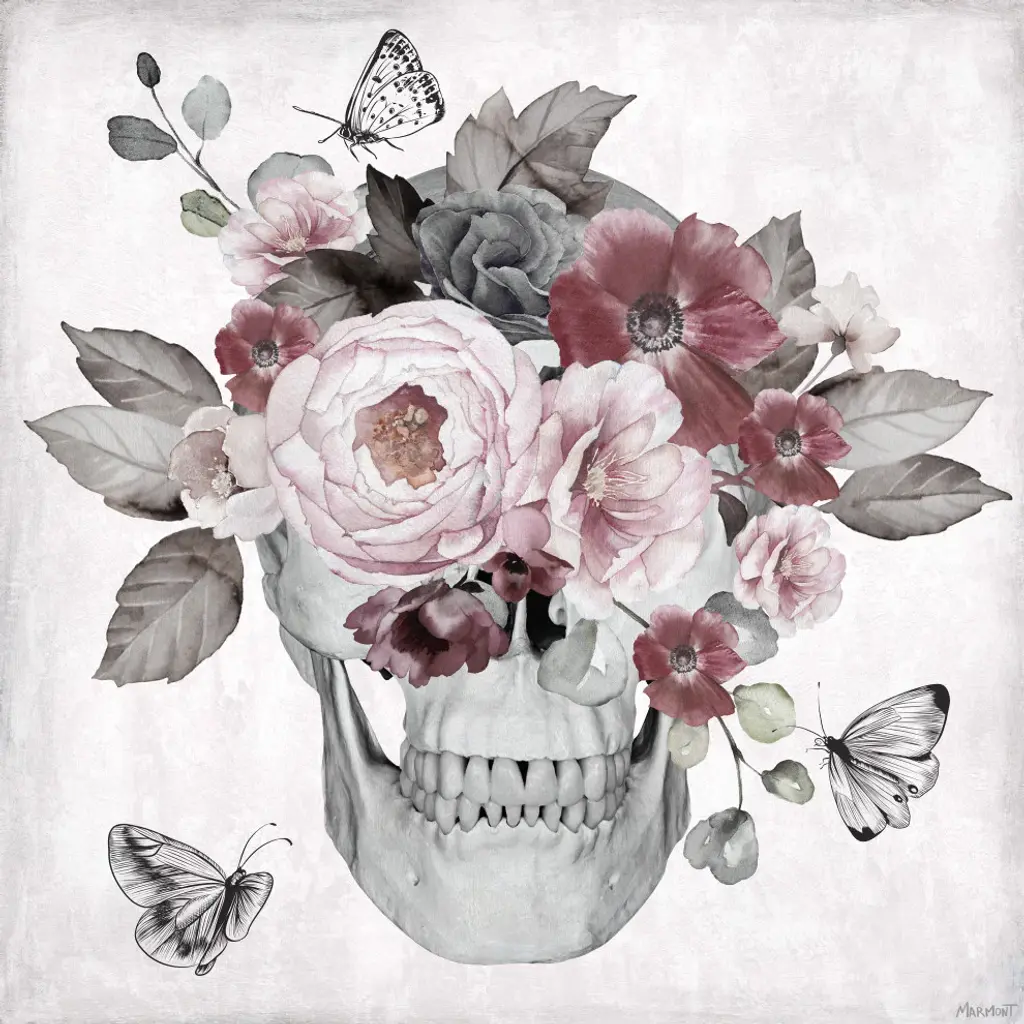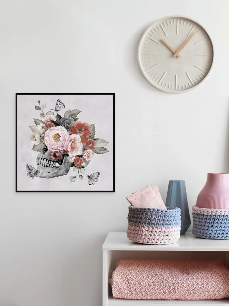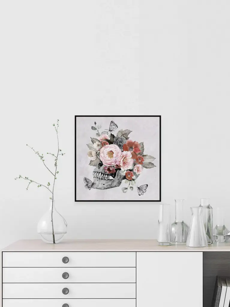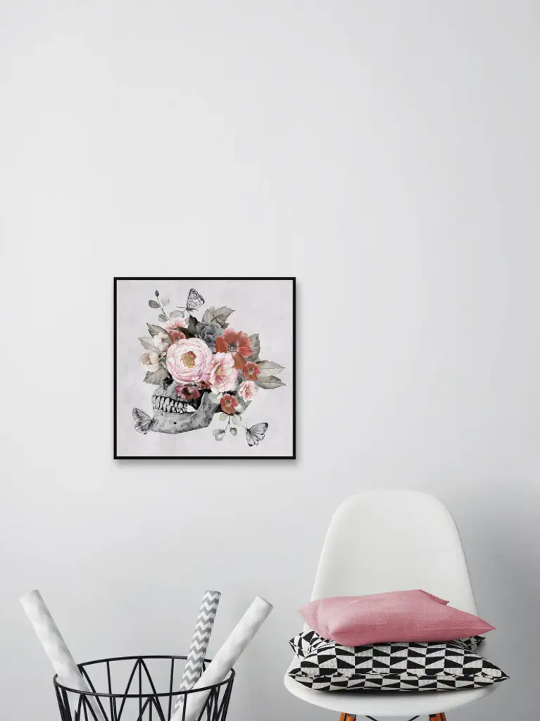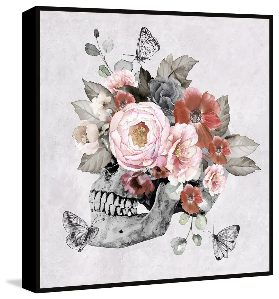 Spooky yet elegant all at once, this watercolor painting print features a black and white skull filled with colorful blooming flowers coming out of the top and some butterflies around. Proudly printed in the USA, this piece is printed on canvas before it- s stretched, and framed and mounted in a non-warping floater frame thereafter. With wall-mounting hooks included, this artful accent is ready to hang up as soon as it reaches your front door.- Durable art print on high quality canvas from the Marmont Hill Art Collective- Professionally hand stretched- Framed and mounted in non-warping- floater- frame- Arrives ready to hang- Includes a certificate of authenticity