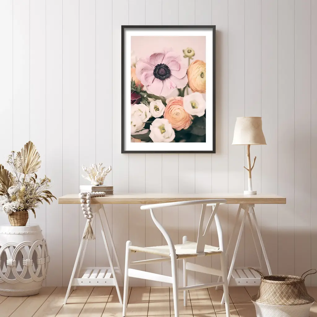 Add fresh florals to your space with Kathrin Pienaar's "Pastel Bouquet" framed print wall art. The delicate assorted flower bouquet in shades of orange, white, pink, green adds a feminine touch to any room. Handcrafted in Chattanooga, Tennessee, by Ready2HangArt using a locally sourced artist print, finished with a rear hanger for simple installation.