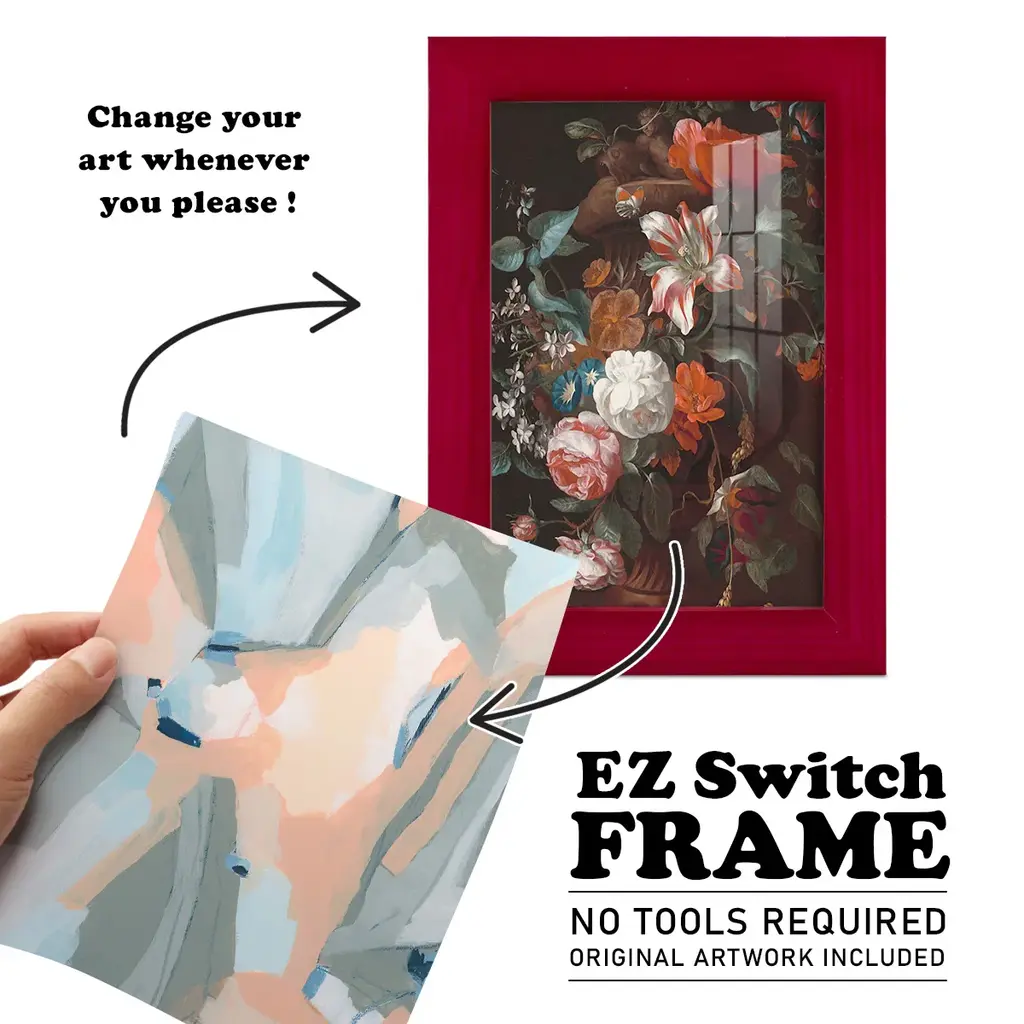 Pastel Cavern II -EZ SWITCH Framed Print w/glass-Cherry Red A delightful, framed print. Featuring a solid wood frame with real wood glass. This premium print is giclee quality. In addition, every frame features a removable back and table top stand. This allows you to change your art in the future or to just stand the art on a table for a new look. We are sure you'll enjoy our new series of EZ SWITCH Framed Art. Solid Wood Frame Real Glass Removable / Replaceable Art Built in Tabletop Stand Sizes range from 4x6 up to 12x15 - buy just one or pair them up as sets as you see fit.