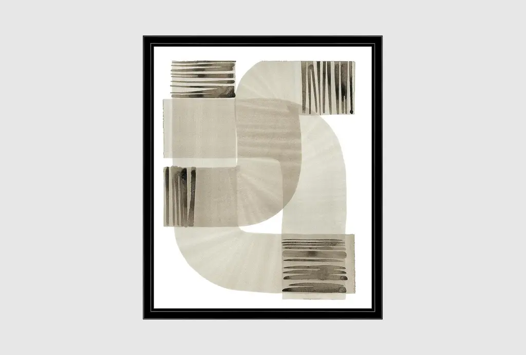 Designed by us and available only at One Kings Lane: A contemporary study of color and form, this pastel rendering of overlapping geometric shapes is beautifully reproduced here on matte paper. Displayed under glass in a simple frame, this piece arrives ready to hang.
