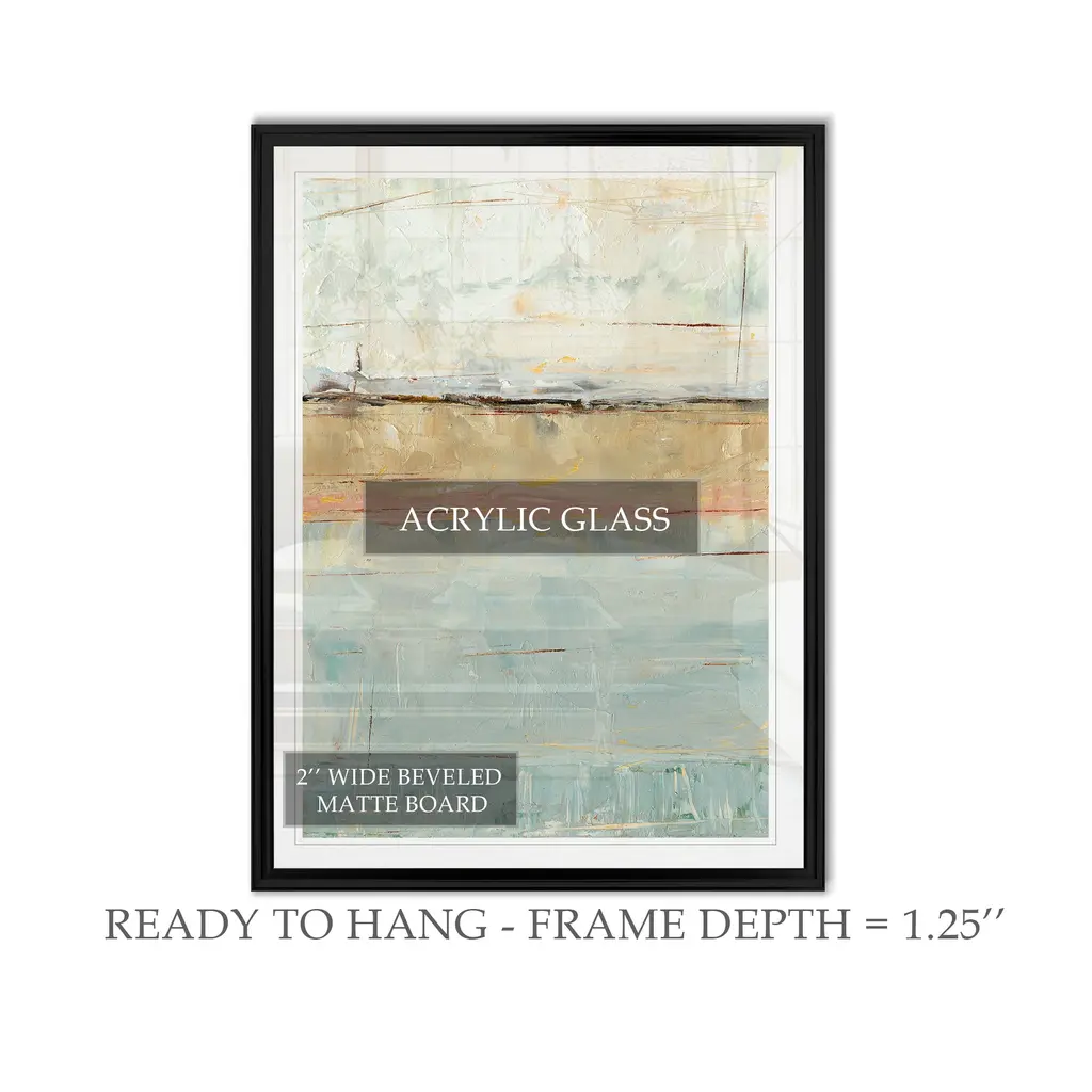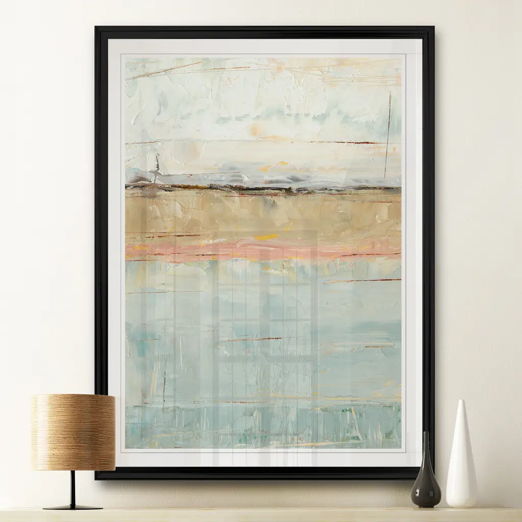 Pastel Horizon I -Custom Framed Print A premium custom framed giclee print Featuring a beveled a matt , acrylic glass, and a high quality giclee print BLACK FRAMED - 4 SIZES AVAILABLE - BLACK FRAMED 18''x24''- Overall Size 22''x30'' - Overall Size 26''x36''' - Overall Size 30''x42''' - Overall Size Each piece is made to order. Built to Last Each piece comes ready to hang Fade and Water resistant Made domestically