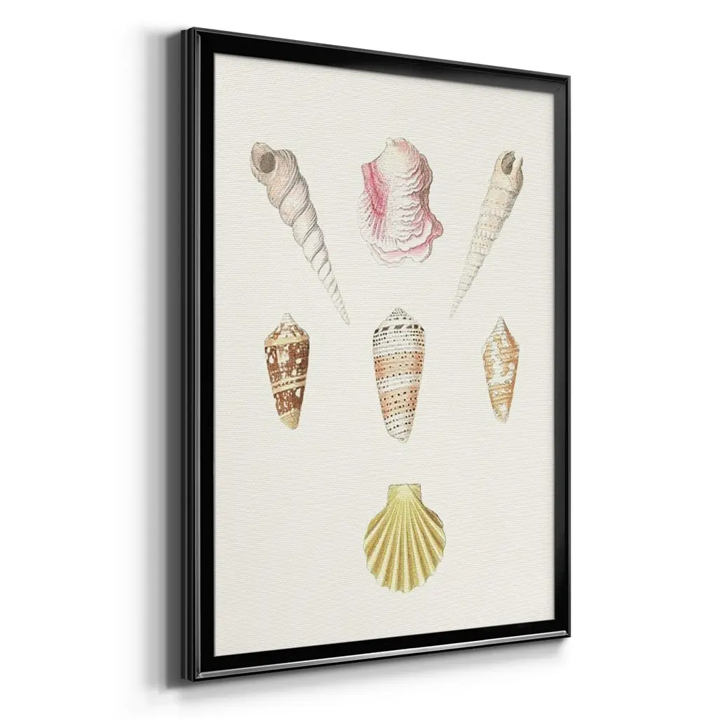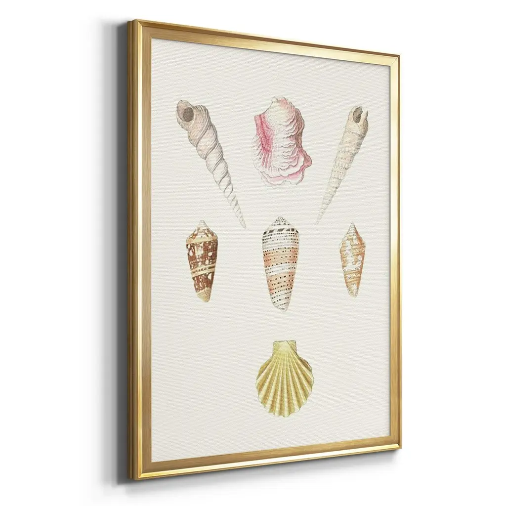 Pastel Knorr Shells I Premium Framed Print - Ready to Hang A Premium Framed Print created to last. Framed in distressed wood and available in an array of sizes and colors Featuring a beveled a solid wood stretcher bar, each piece comes ready to hand 4 SIZES AVAILABLE 30.5''X42.5'' - Overall Size 26.5'X36.5'' - Overall Size 22.5''x30.5'' - Overall Size 18.5''x24.5'' - Overall Size Each piece is made to order. Each piece comes with hanging hardware. Made in the USA Ready to Hang