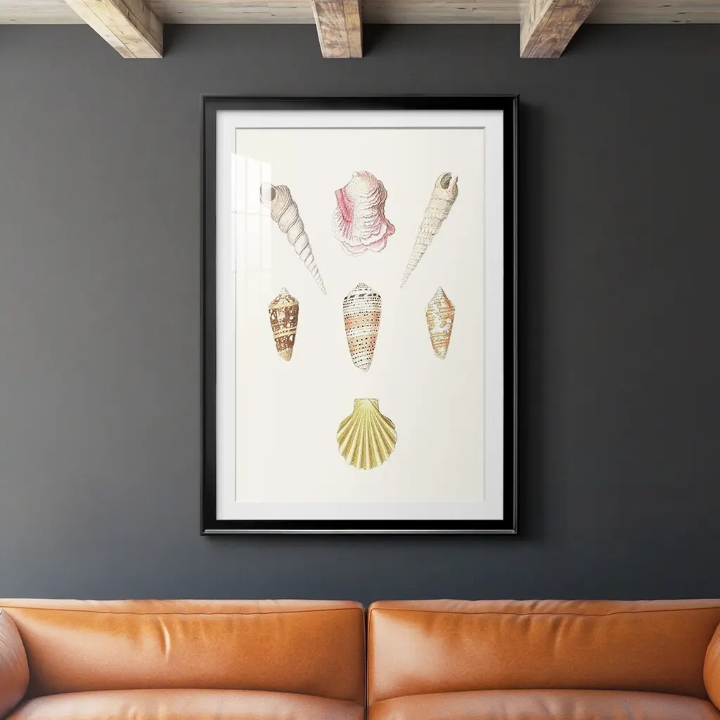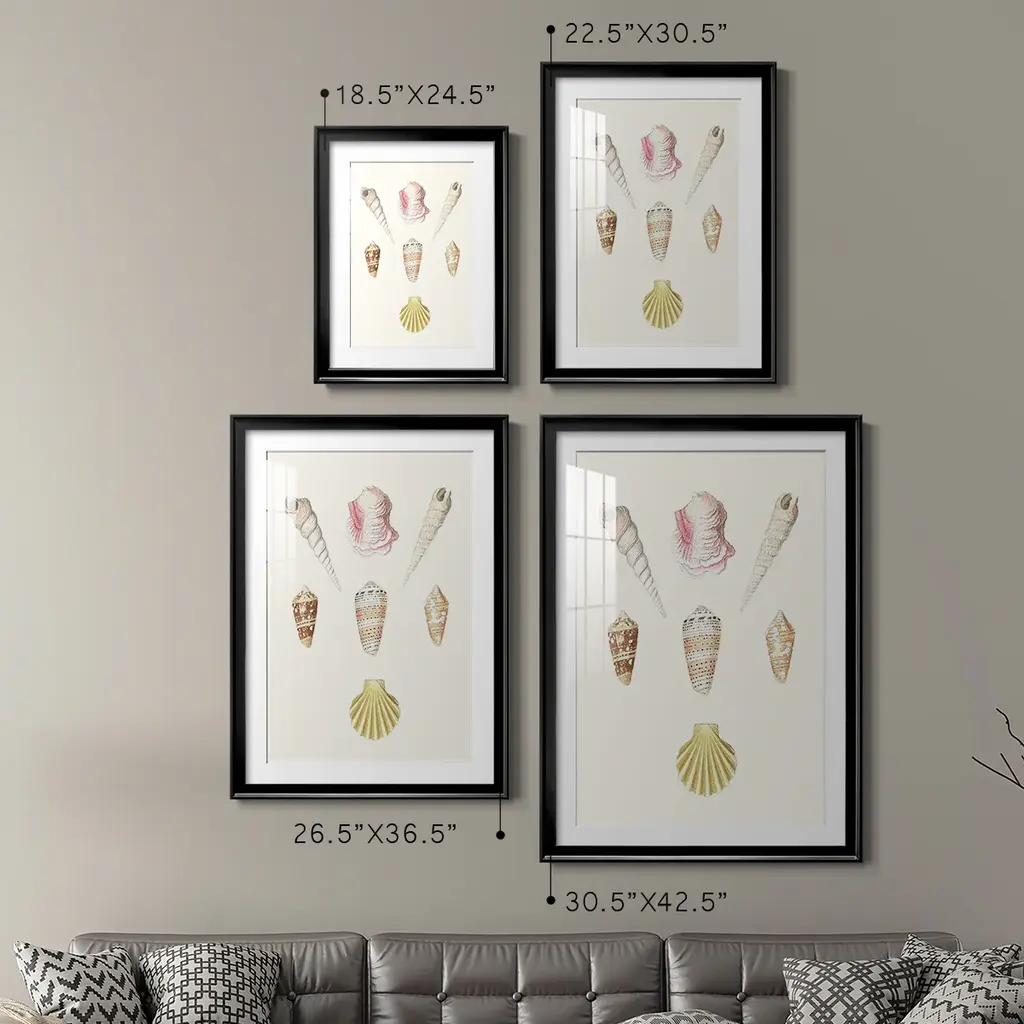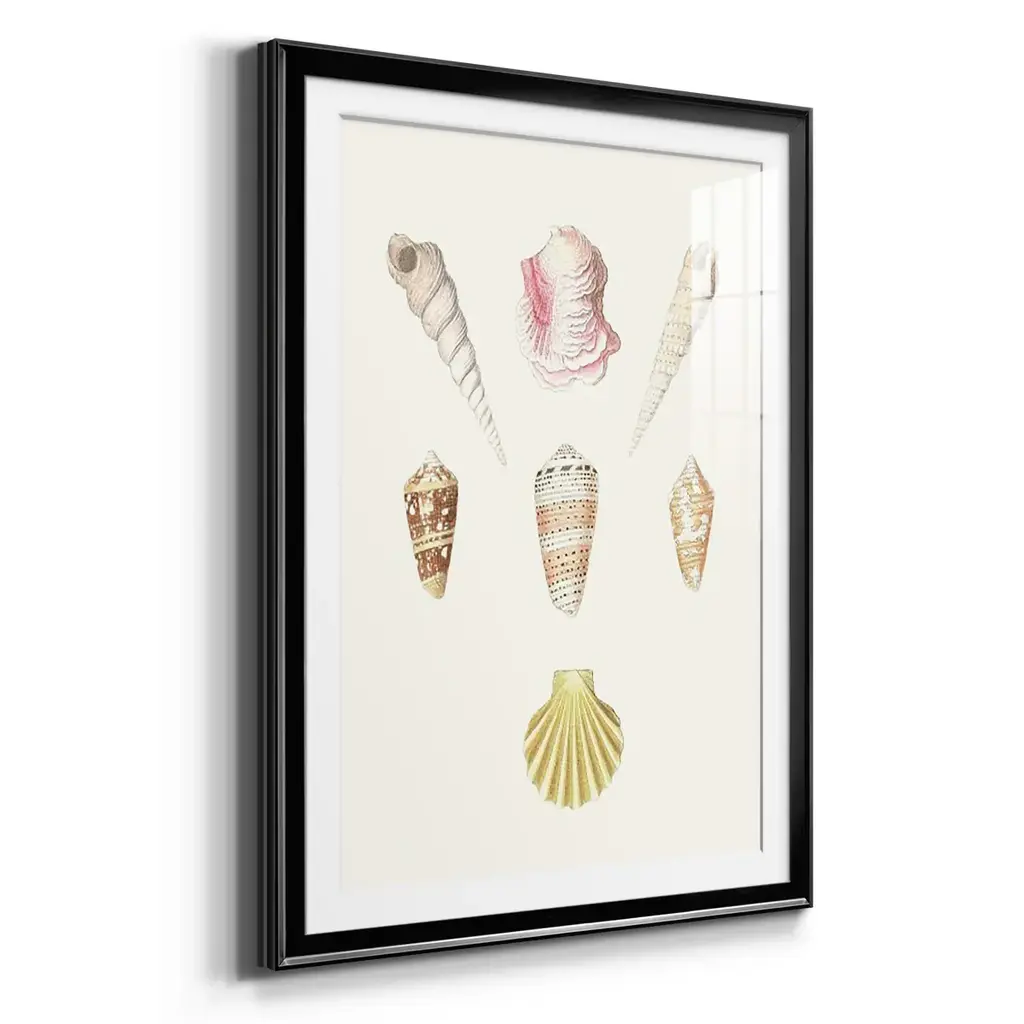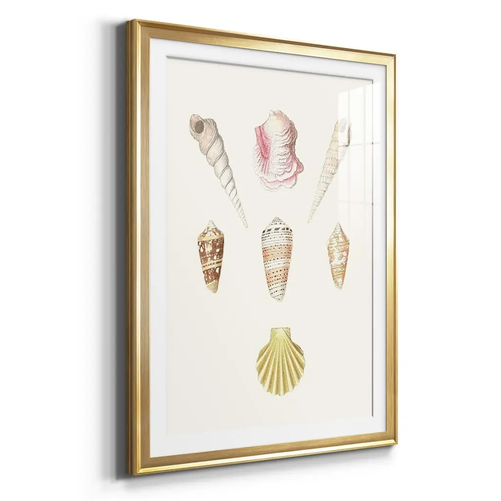 Pastel Knorr Shells I Premium Framed Print - Ready to Hang A Premium Framed Print created to last. Framed in distressed wood and available in an array of sizes and colors Featuring a beveled a solid wood stretcher bar, each piece comes ready to hand 4 SIZES AVAILABLE 30.5''X42.5'' - Overall Size 26.5'X36.5'' - Overall Size 22.5''x30.5'' - Overall Size 18.5''x24.5'' - Overall Size Each piece is made to order. Each piece comes with hanging hardware. Made in the USA Ready to Hang Giclee Paper Print Acrylic Glass Beveled Matt Board