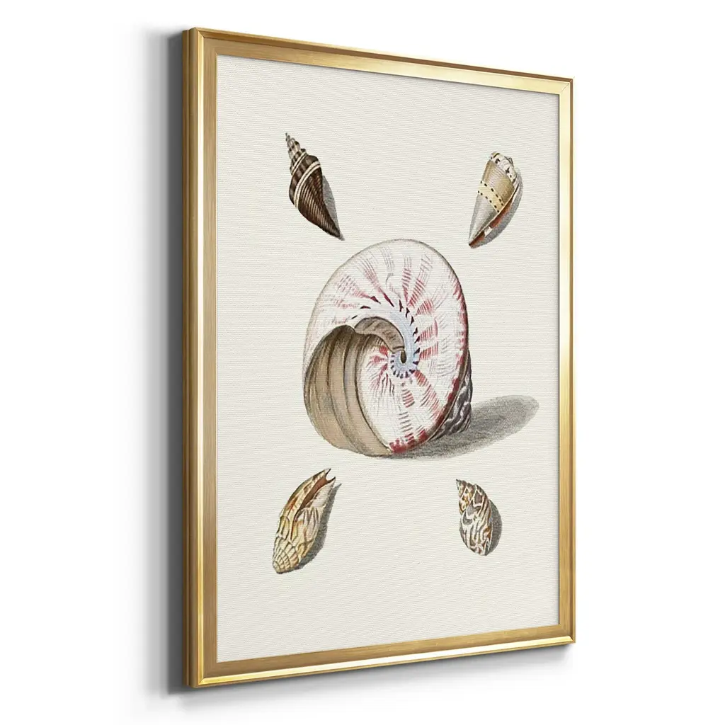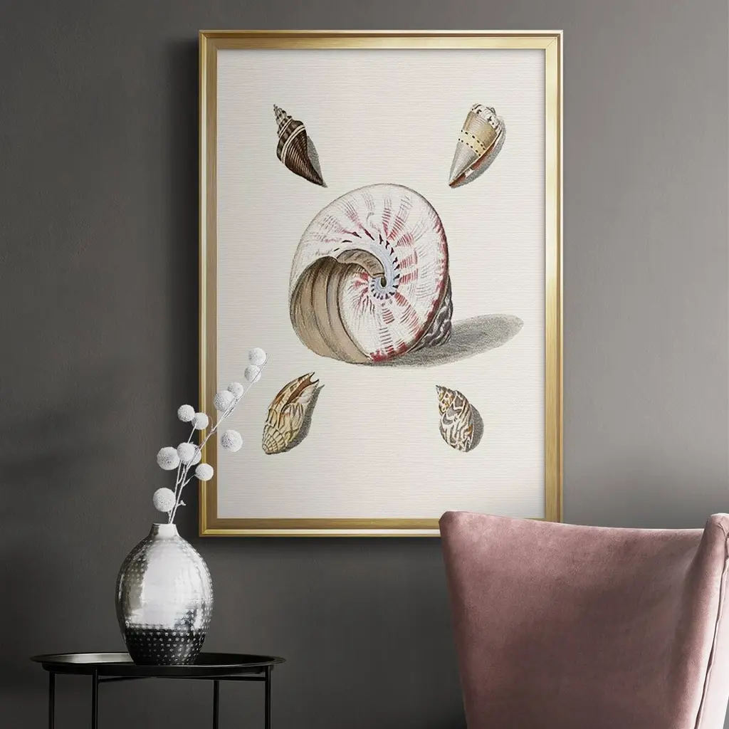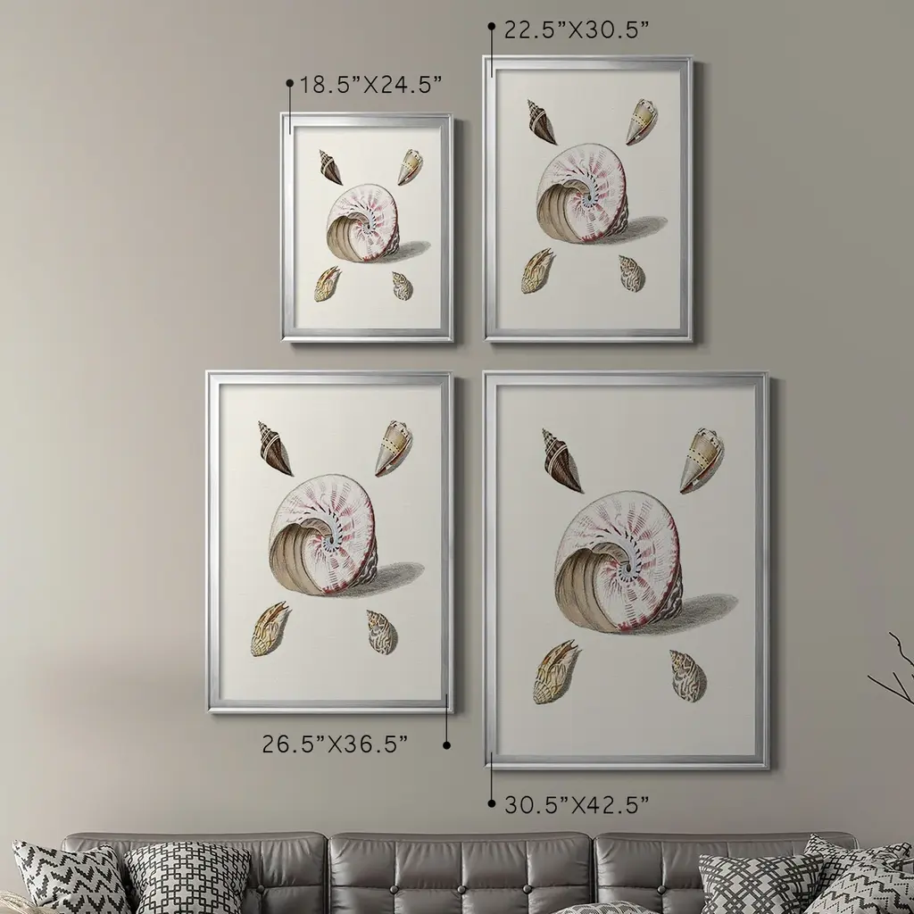 Pastel Knorr Shells II Premium Framed Print - Ready to Hang A Premium Framed Print created to last. Framed in distressed wood and available in an array of sizes and colors Featuring a beveled a solid wood stretcher bar, each piece comes ready to hand 4 SIZES AVAILABLE 30.5''X42.5'' - Overall Size 26.5'X36.5'' - Overall Size 22.5''x30.5'' - Overall Size 18.5''x24.5'' - Overall Size Each piece is made to order. Each piece comes with hanging hardware. Made in the USA Ready to Hang