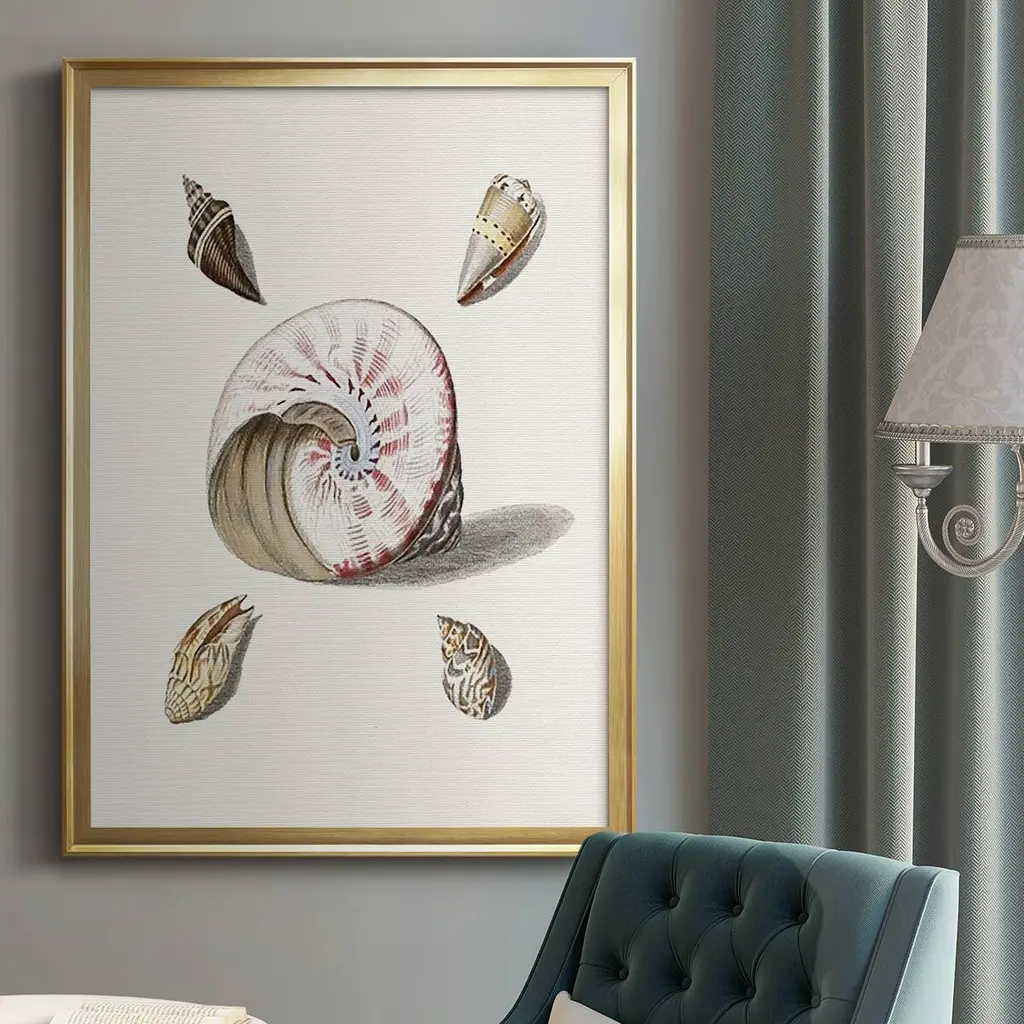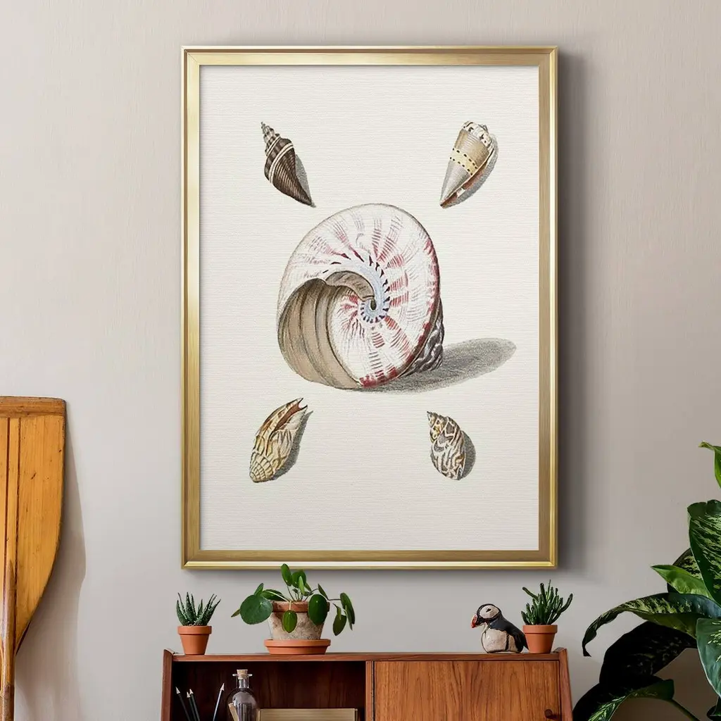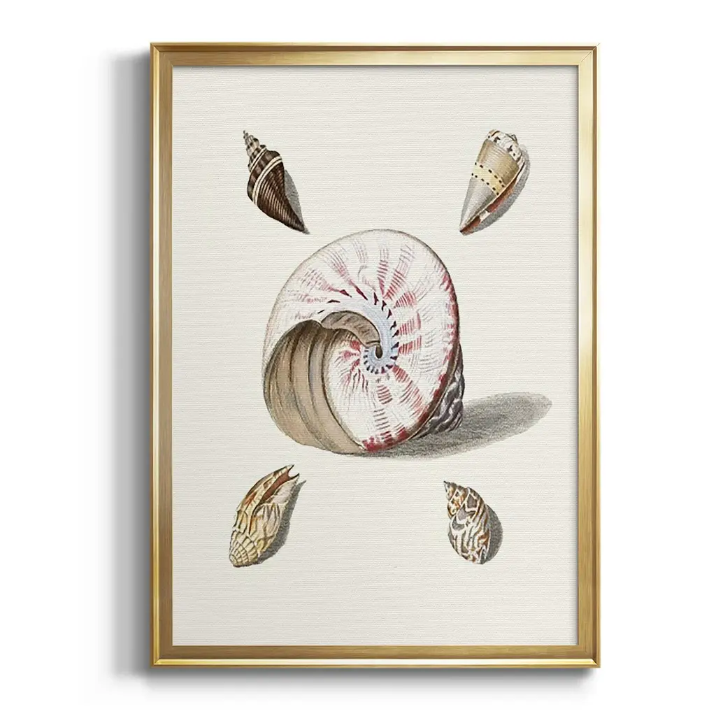 Pastel Knorr Shells II Premium Framed Print - Ready to Hang A Premium Framed Print created to last. Framed in distressed wood and available in an array of sizes and colors Featuring a beveled a solid wood stretcher bar, each piece comes ready to hand 4 SIZES AVAILABLE 30.5''X42.5'' - Overall Size 26.5'X36.5'' - Overall Size 22.5''x30.5'' - Overall Size 18.5''x24.5'' - Overall Size Each piece is made to order. Each piece comes with hanging hardware. Made in the USA Ready to Hang