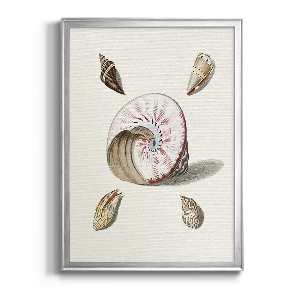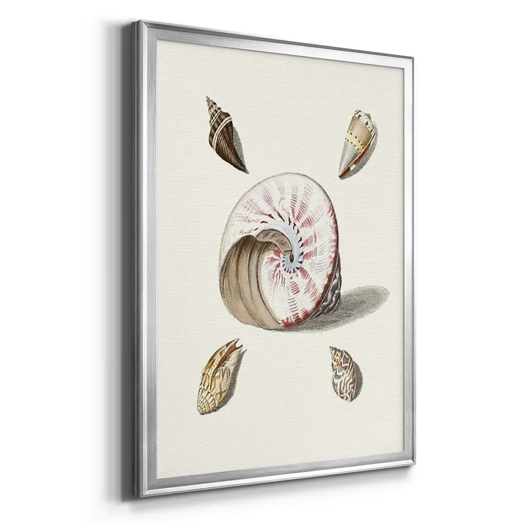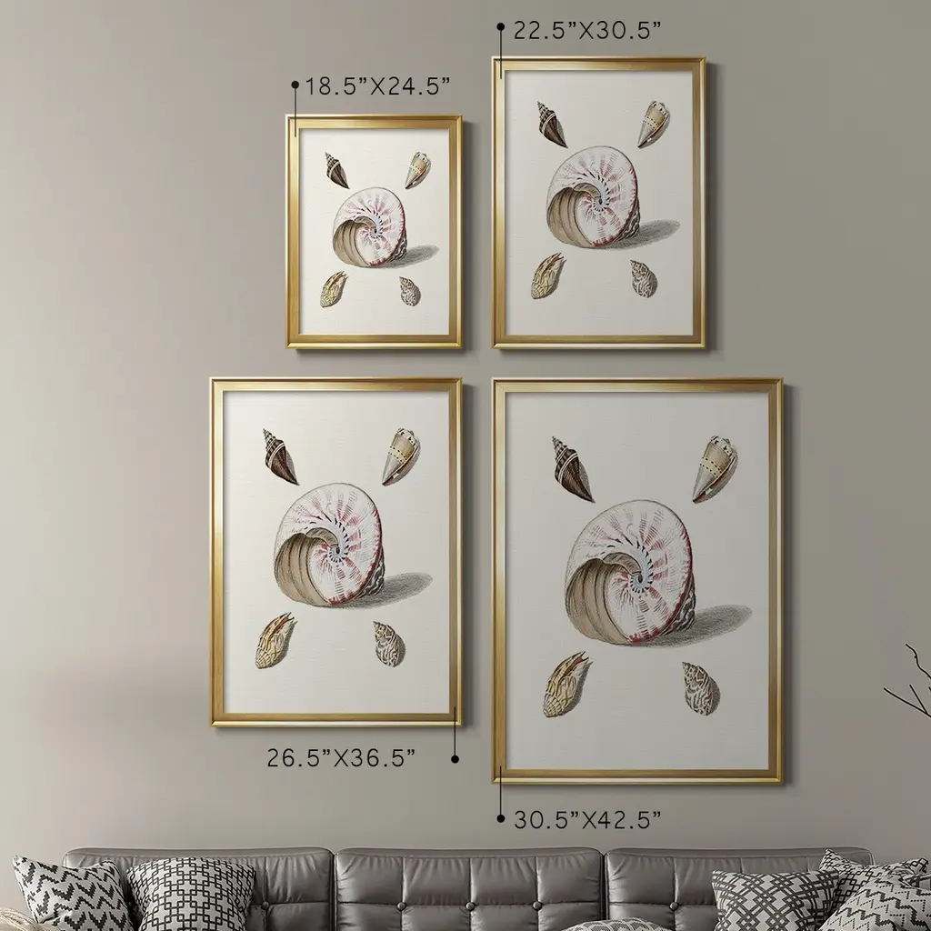 Pastel Knorr Shells II Premium Framed Print - Ready to Hang A Premium Framed Print created to last. Framed in distressed wood and available in an array of sizes and colors Featuring a beveled a solid wood stretcher bar, each piece comes ready to hand 4 SIZES AVAILABLE 30.5''X42.5'' - Overall Size 26.5'X36.5'' - Overall Size 22.5''x30.5'' - Overall Size 18.5''x24.5'' - Overall Size Each piece is made to order. Each piece comes with hanging hardware. Made in the USA Ready to Hang