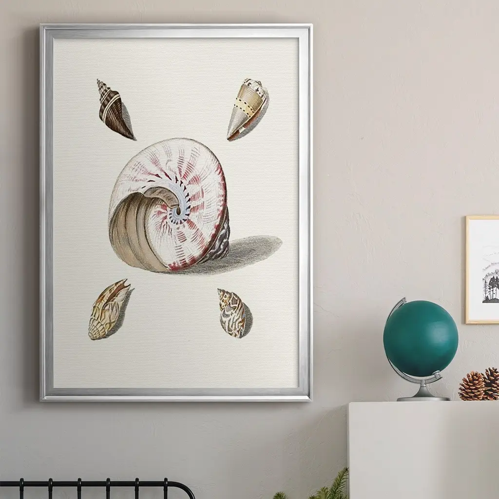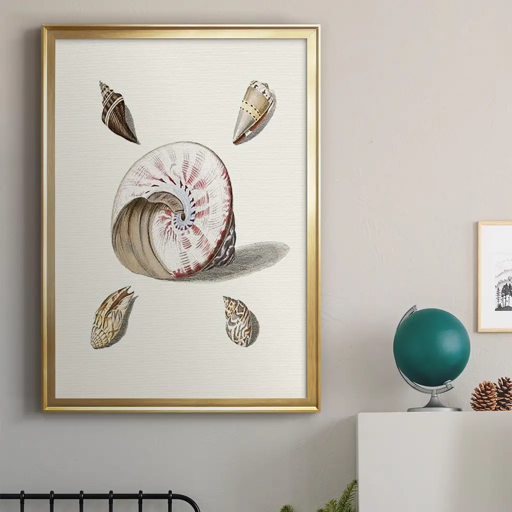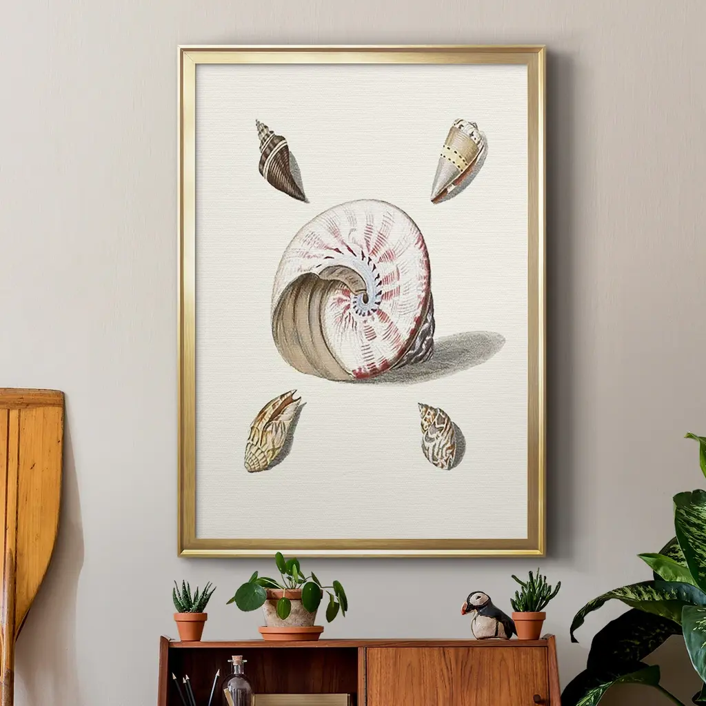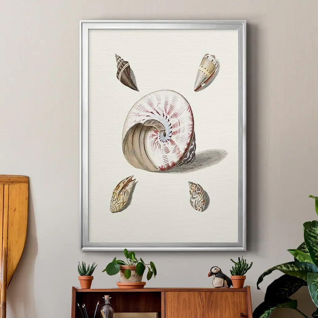 Pastel Knorr Shells II Premium Framed Print - Ready to Hang A Premium Framed Print created to last. Framed in distressed wood and available in an array of sizes and colors Featuring a beveled a solid wood stretcher bar, each piece comes ready to hand 4 SIZES AVAILABLE 30.5''X42.5'' - Overall Size 26.5'X36.5'' - Overall Size 22.5''x30.5'' - Overall Size 18.5''x24.5'' - Overall Size Each piece is made to order. Each piece comes with hanging hardware. Made in the USA Ready to Hang