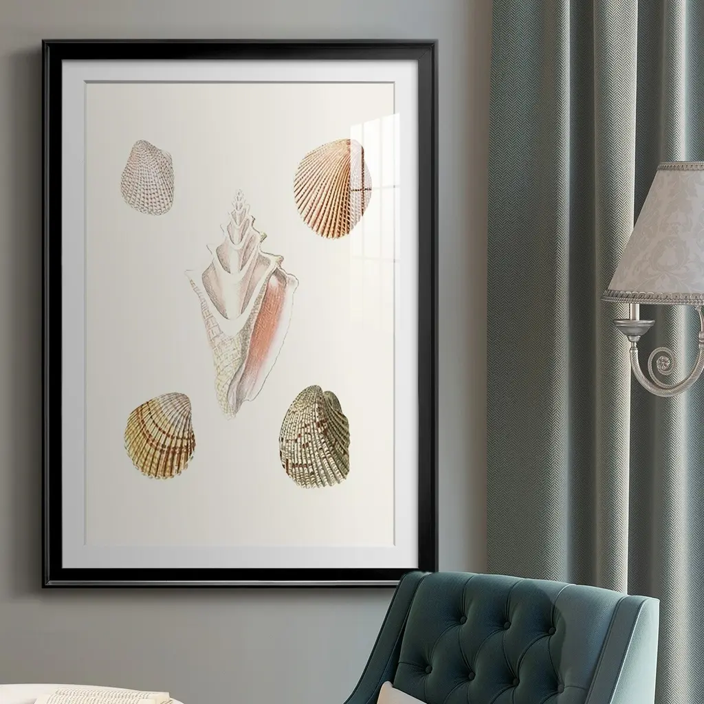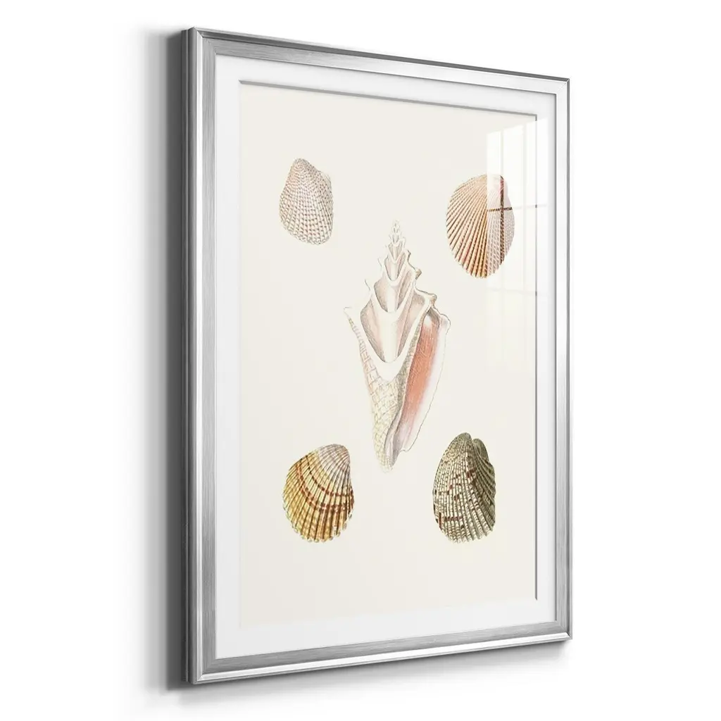 Pastel Knorr Shells IX Premium Framed Print - Ready to Hang A Premium Framed Print created to last. Framed in distressed wood and available in an array of sizes and colors Featuring a beveled a solid wood stretcher bar, each piece comes ready to hand 4 SIZES AVAILABLE 30.5''X42.5'' - Overall Size 26.5'X36.5'' - Overall Size 22.5''x30.5'' - Overall Size 18.5''x24.5'' - Overall Size Each piece is made to order. Each piece comes with hanging hardware. Made in the USA Ready to Hang Giclee Paper Print Acrylic Glass Beveled Matt Board