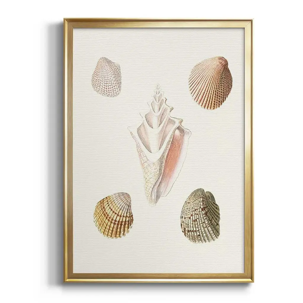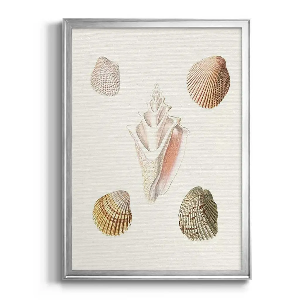 Pastel Knorr Shells IX Premium Framed Print - Ready to Hang A Premium Framed Print created to last. Framed in distressed wood and available in an array of sizes and colors Featuring a beveled a solid wood stretcher bar, each piece comes ready to hand 4 SIZES AVAILABLE 30.5''X42.5'' - Overall Size 26.5'X36.5'' - Overall Size 22.5''x30.5'' - Overall Size 18.5''x24.5'' - Overall Size Each piece is made to order. Each piece comes with hanging hardware. Made in the USA Ready to Hang