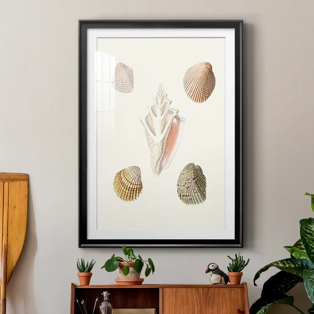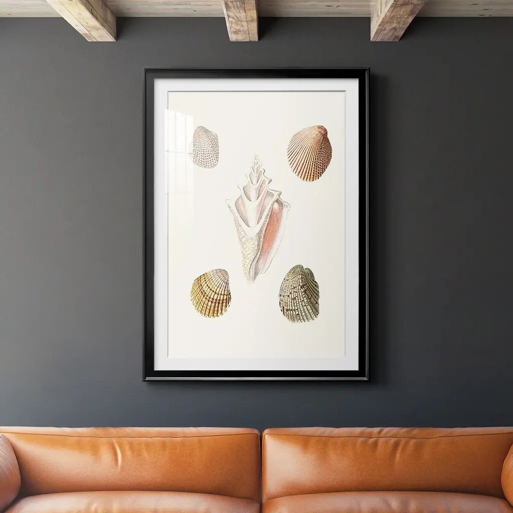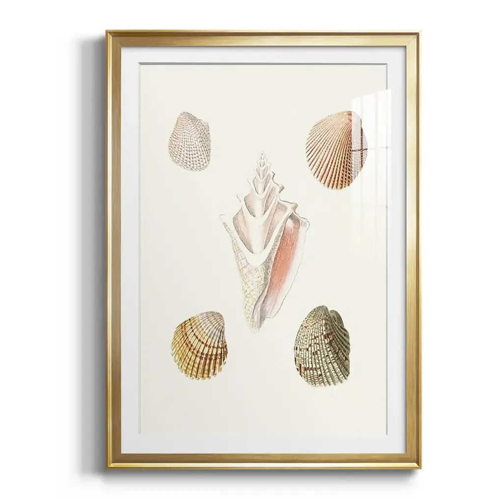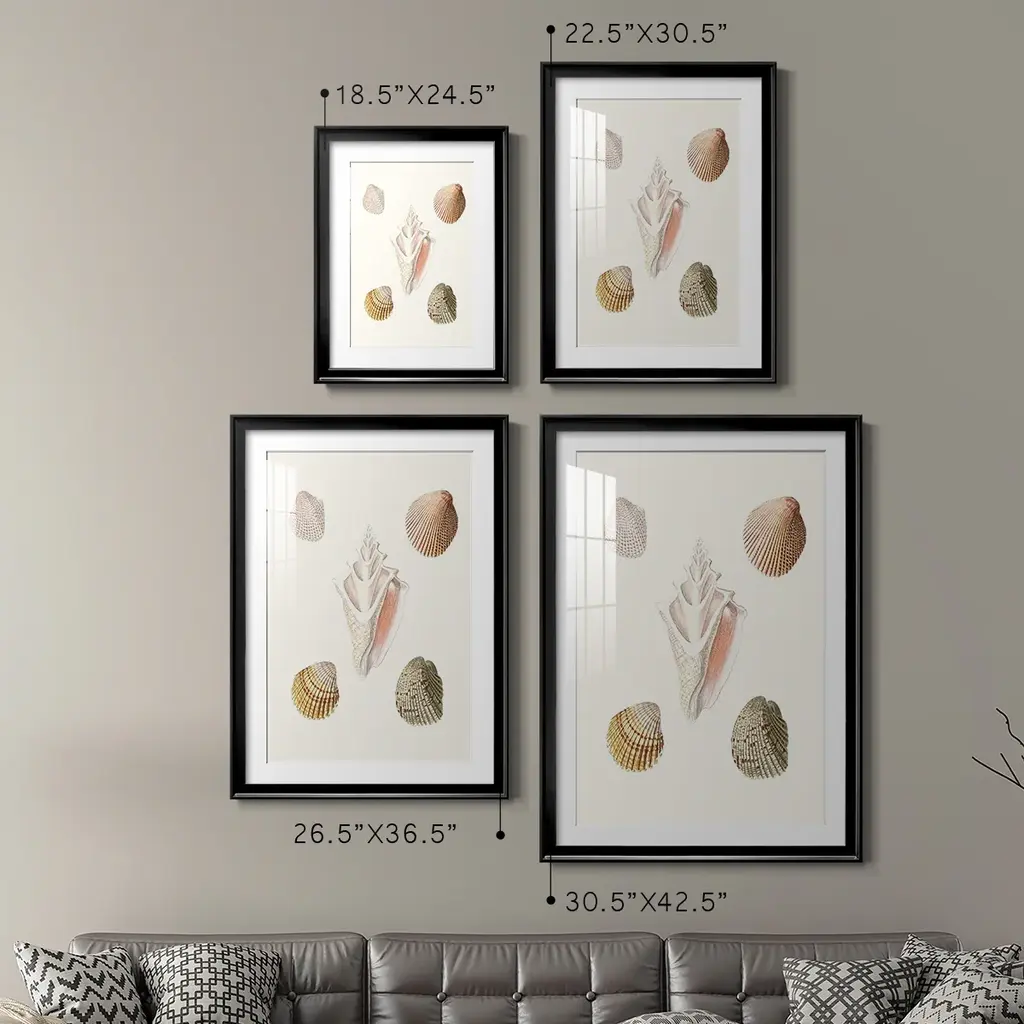 Pastel Knorr Shells IX Premium Framed Print - Ready to Hang A Premium Framed Print created to last. Framed in distressed wood and available in an array of sizes and colors Featuring a beveled a solid wood stretcher bar, each piece comes ready to hand 4 SIZES AVAILABLE 30.5''X42.5'' - Overall Size 26.5'X36.5'' - Overall Size 22.5''x30.5'' - Overall Size 18.5''x24.5'' - Overall Size Each piece is made to order. Each piece comes with hanging hardware. Made in the USA Ready to Hang Giclee Paper Print Acrylic Glass Beveled Matt Board