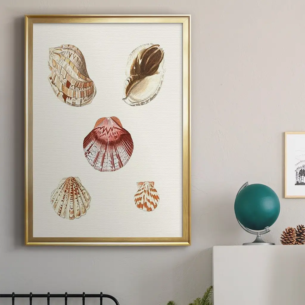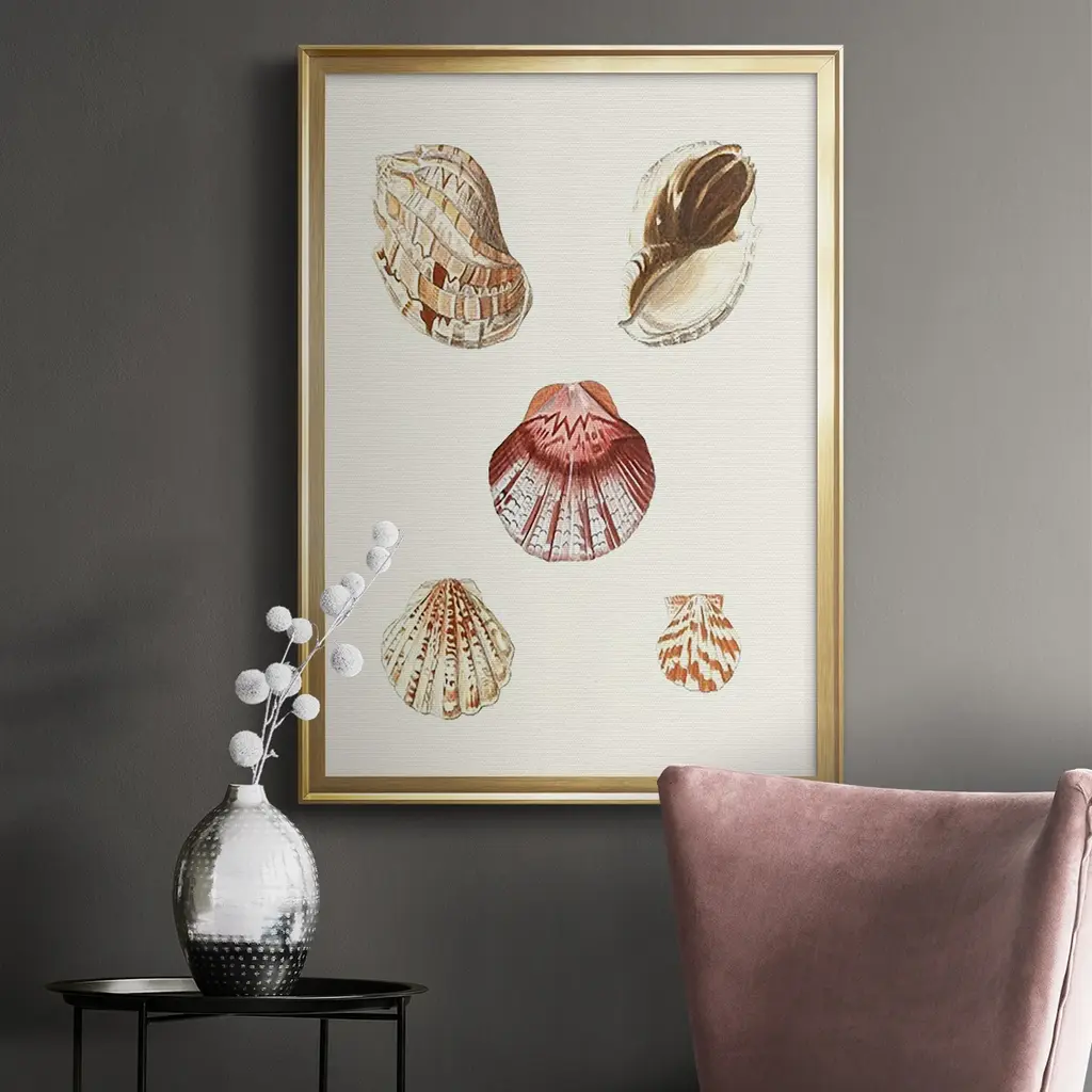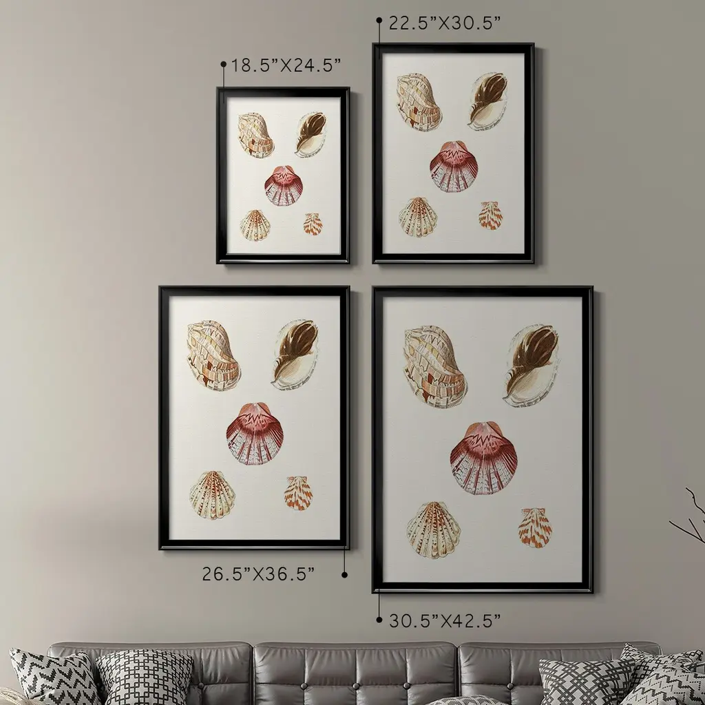 Pastel Knorr Shells V Premium Framed Print - Ready to Hang A Premium Framed Print created to last. Framed in distressed wood and available in an array of sizes and colors Featuring a beveled a solid wood stretcher bar, each piece comes ready to hand 4 SIZES AVAILABLE 30.5''X42.5'' - Overall Size 26.5'X36.5'' - Overall Size 22.5''x30.5'' - Overall Size 18.5''x24.5'' - Overall Size Each piece is made to order. Each piece comes with hanging hardware. Made in the USA Ready to Hang