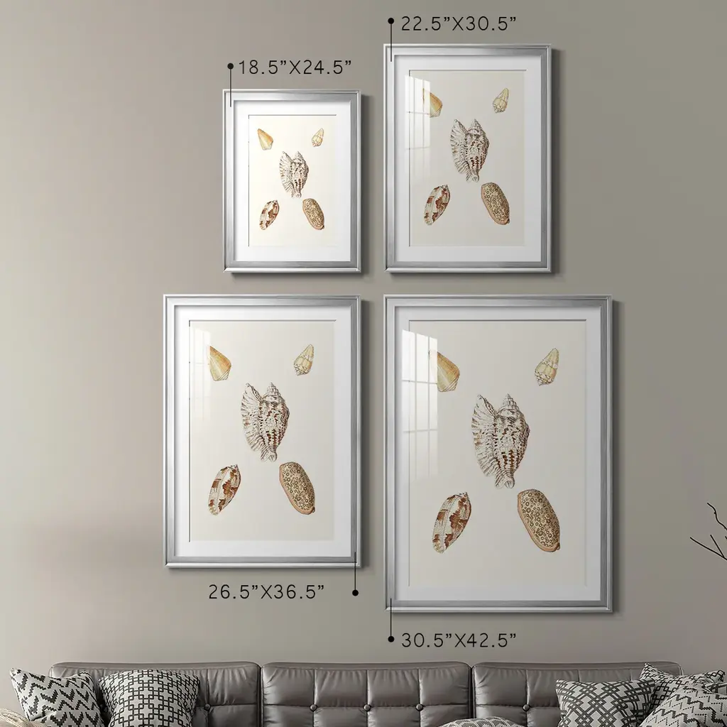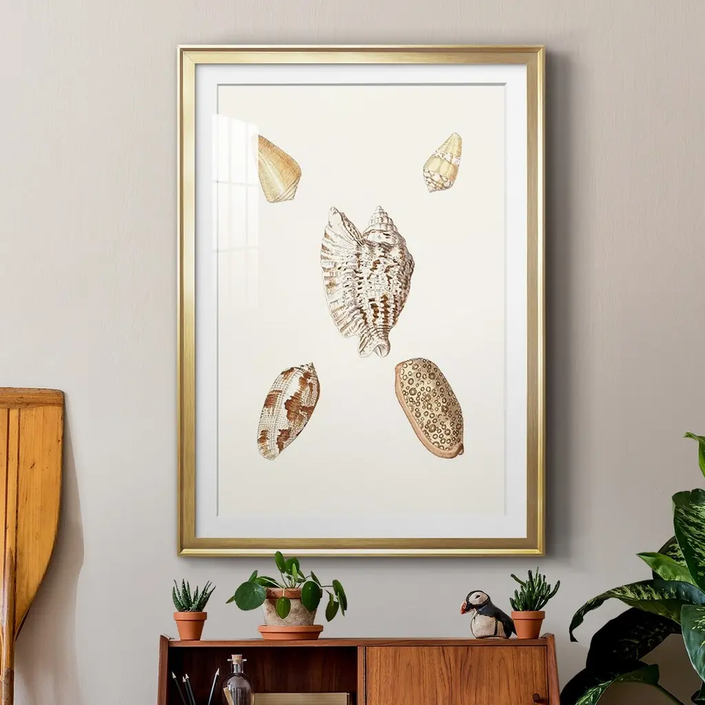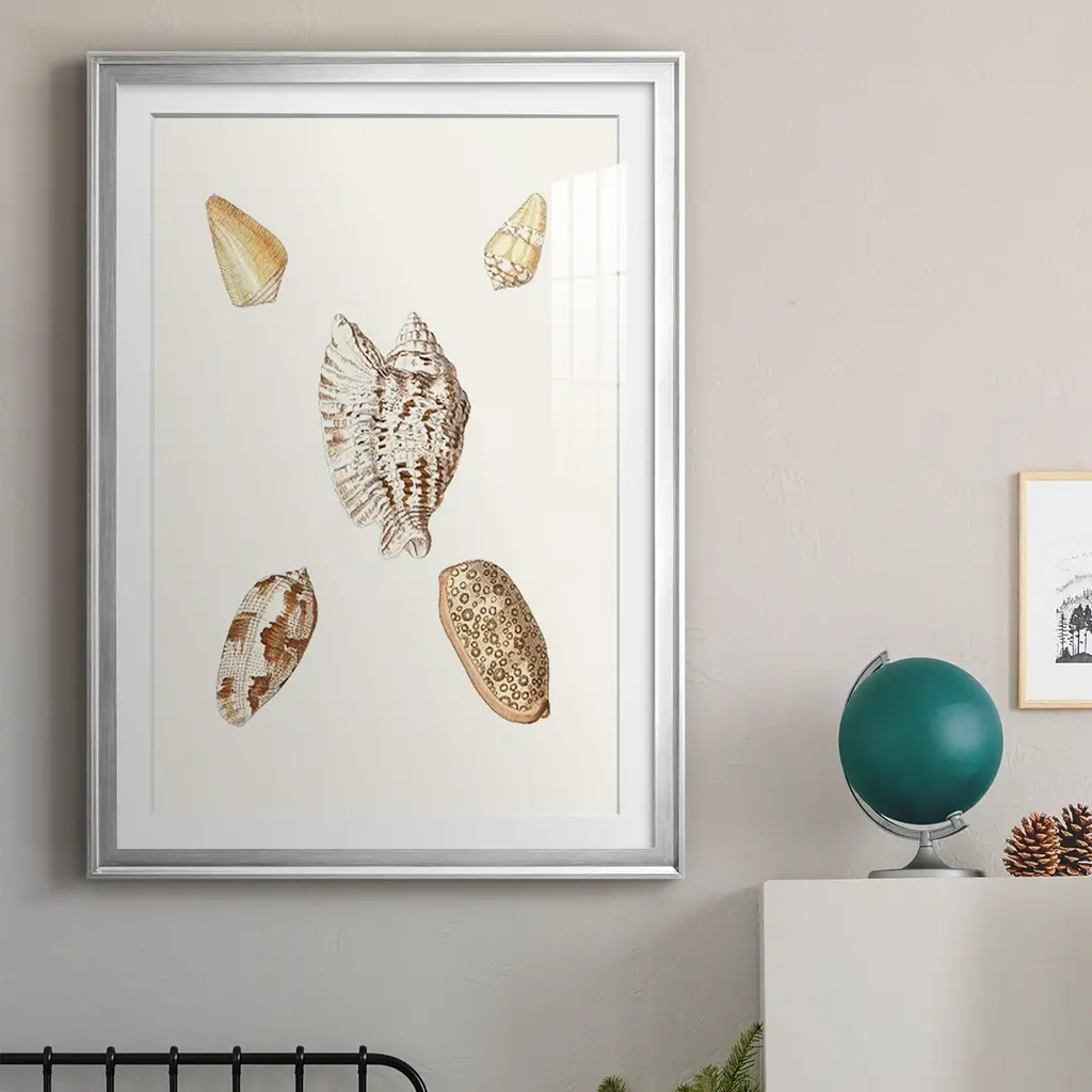 Pastel Knorr Shells VI Premium Framed Print - Ready to Hang A Premium Framed Print created to last. Framed in distressed wood and available in an array of sizes and colors Featuring a beveled a solid wood stretcher bar, each piece comes ready to hand 4 SIZES AVAILABLE 30.5''X42.5'' - Overall Size 26.5'X36.5'' - Overall Size 22.5''x30.5'' - Overall Size 18.5''x24.5'' - Overall Size Each piece is made to order. Each piece comes with hanging hardware. Made in the USA Ready to Hang Giclee Paper Print Acrylic Glass Beveled Matt Board