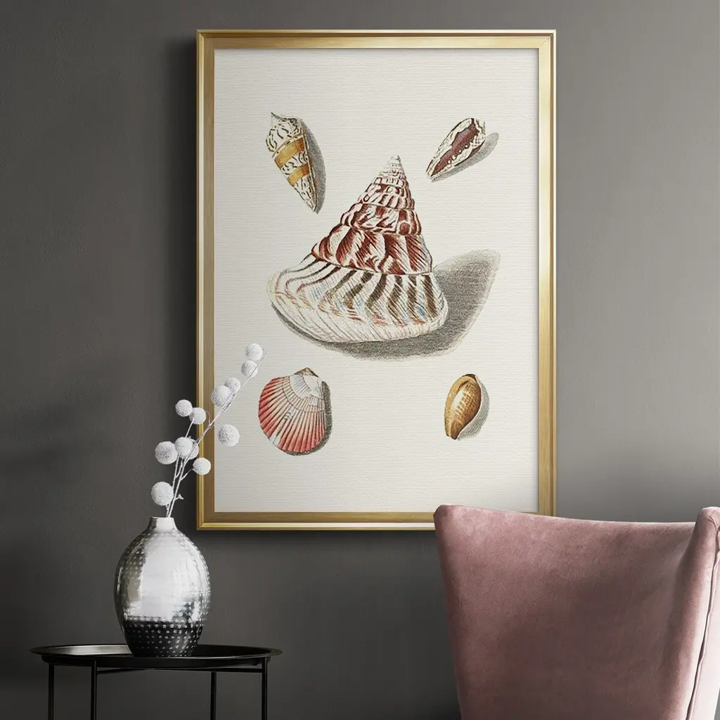 Pastel Knorr Shells VII Premium Framed Print - Ready to Hang A Premium Framed Print created to last. Framed in distressed wood and available in an array of sizes and colors Featuring a beveled a solid wood stretcher bar, each piece comes ready to hand 4 SIZES AVAILABLE 30.5''X42.5'' - Overall Size 26.5'X36.5'' - Overall Size 22.5''x30.5'' - Overall Size 18.5''x24.5'' - Overall Size Each piece is made to order. Each piece comes with hanging hardware. Made in the USA Ready to Hang