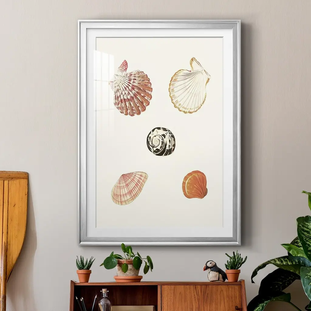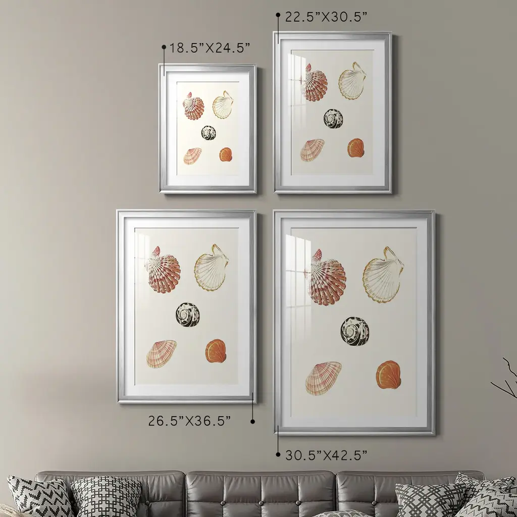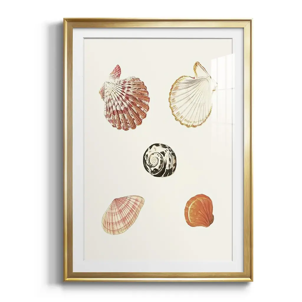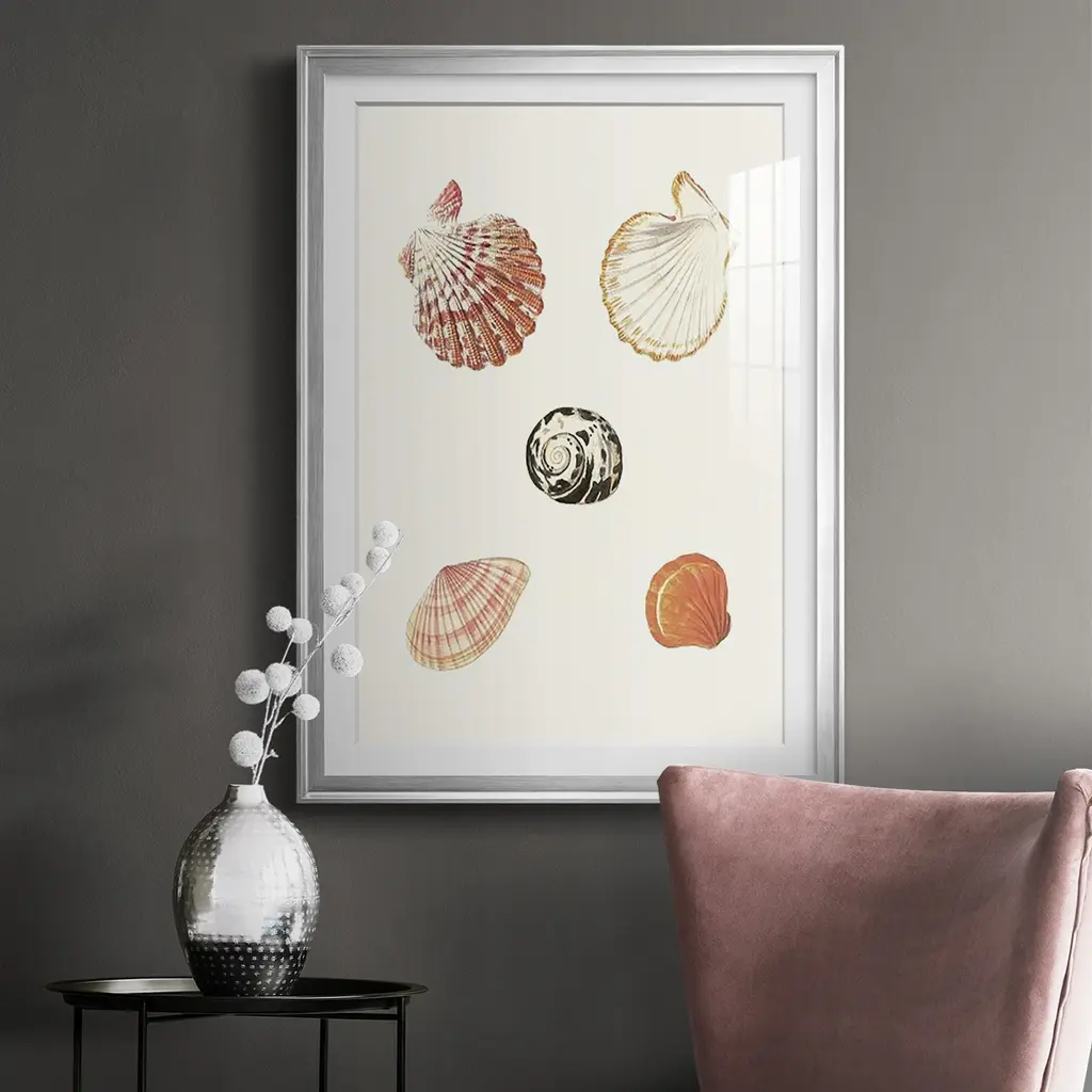 Pastel Knorr Shells VIII Premium Framed Print - Ready to Hang A Premium Framed Print created to last. Framed in distressed wood and available in an array of sizes and colors Featuring a beveled a solid wood stretcher bar, each piece comes ready to hand 4 SIZES AVAILABLE 30.5''X42.5'' - Overall Size 26.5'X36.5'' - Overall Size 22.5''x30.5'' - Overall Size 18.5''x24.5'' - Overall Size Each piece is made to order. Each piece comes with hanging hardware. Made in the USA Ready to Hang Giclee Paper Print Acrylic Glass Beveled Matt Board