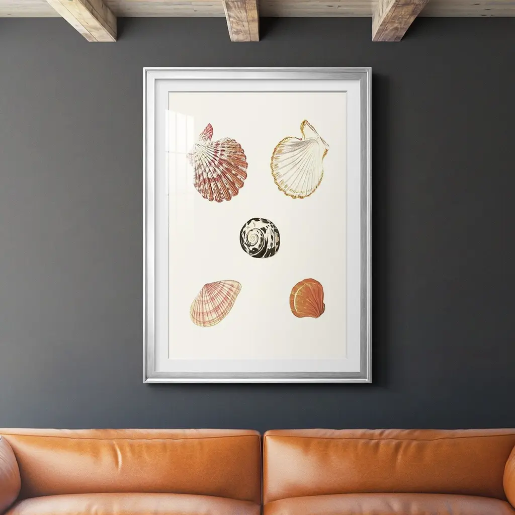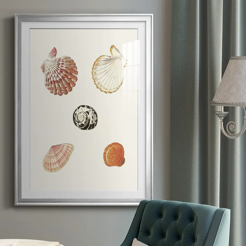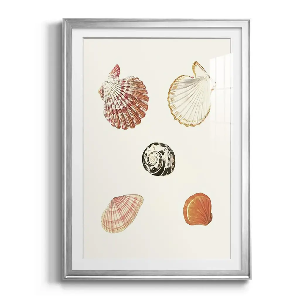 Pastel Knorr Shells VIII Premium Framed Print - Ready to Hang A Premium Framed Print created to last. Framed in distressed wood and available in an array of sizes and colors Featuring a beveled a solid wood stretcher bar, each piece comes ready to hand 4 SIZES AVAILABLE 30.5''X42.5'' - Overall Size 26.5'X36.5'' - Overall Size 22.5''x30.5'' - Overall Size 18.5''x24.5'' - Overall Size Each piece is made to order. Each piece comes with hanging hardware. Made in the USA Ready to Hang Giclee Paper Print Acrylic Glass Beveled Matt Board
