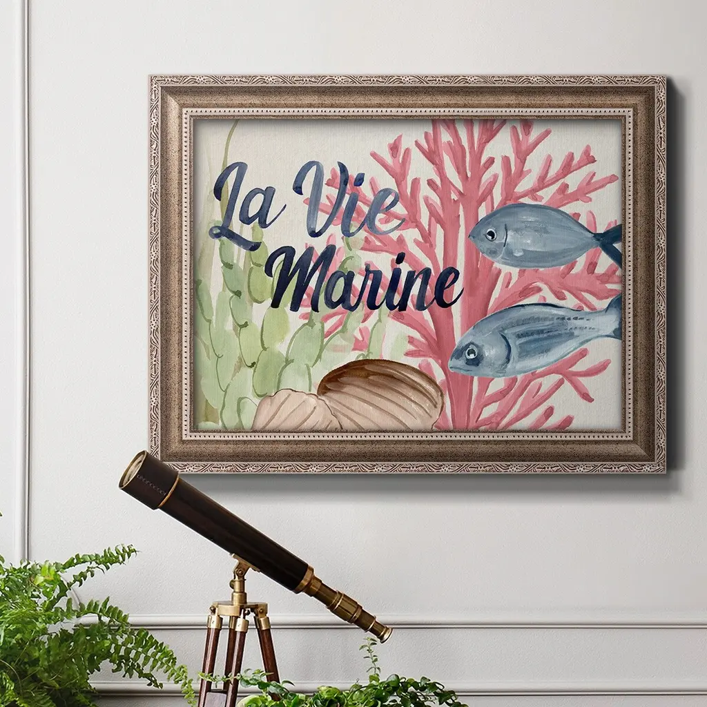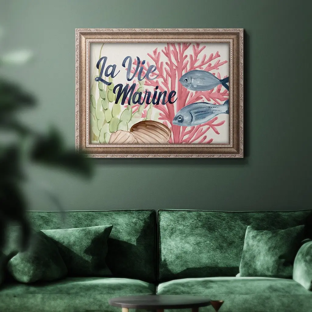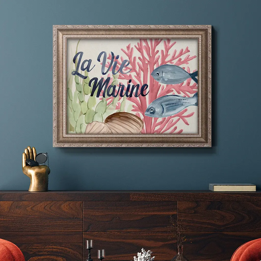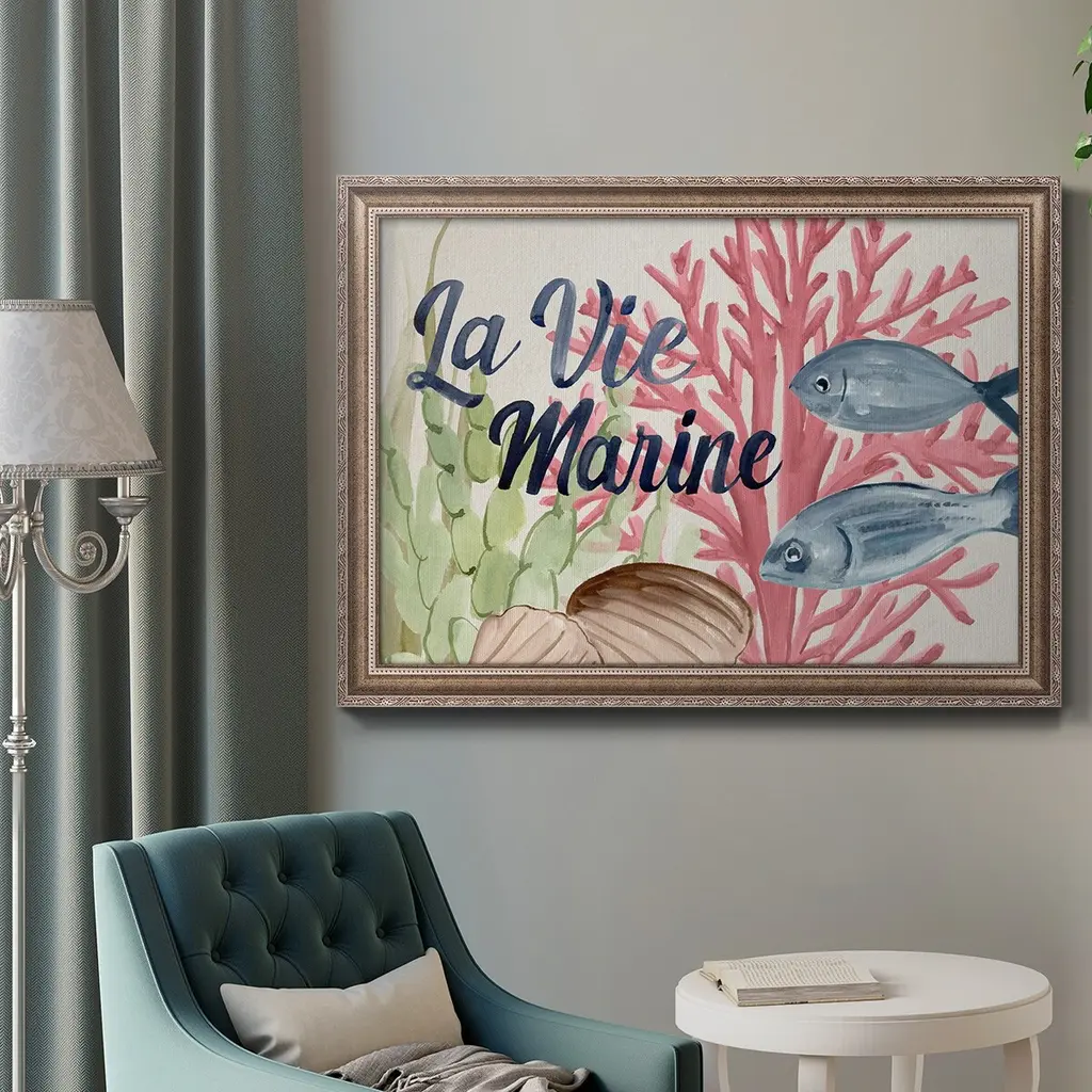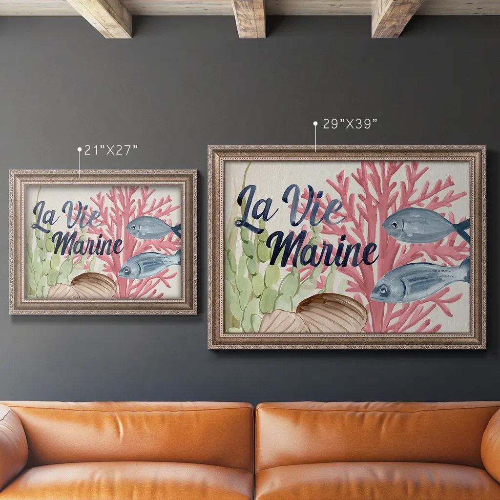 Pastel Mer I Premium Framed Canvas- Ready to Hang A Premium Framed Canvas created to last. Framed in distressed wood and available in an array of sizes and colors Featuring a beveled a solid wood stretcher bar, each piece comes ready to hand 3 SIZES AVAILABLE 16''X20'' - Overall Size 18'X27'' - Overall Size 24''x36'' - Overall Size Each piece is made to order. Each piece comes with hanging hardware. Made in the USA Ready to Hang Giclee Paper Print Acrylic Glass Beveled Matt Board