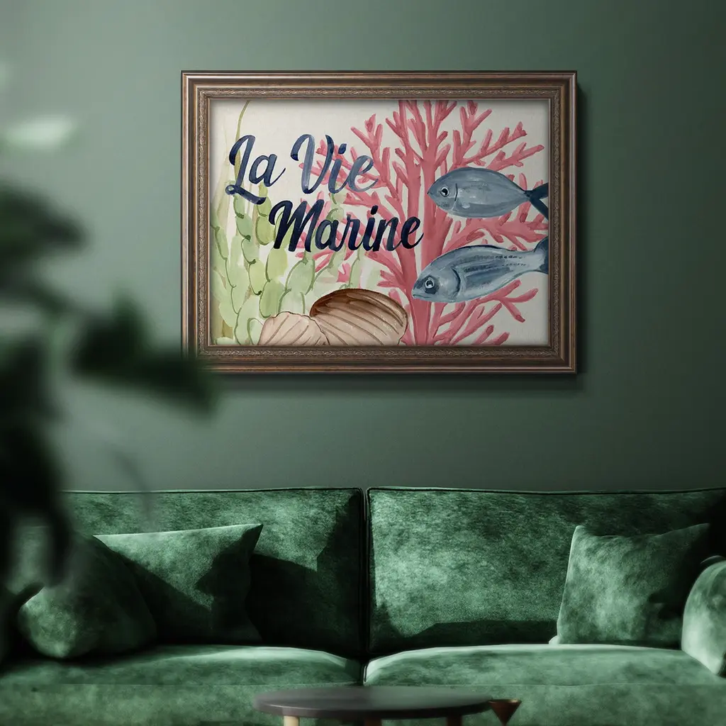 Pastel Mer I Premium Framed Canvas- Ready to Hang A Premium Framed Canvas created to last. Framed in distressed wood and available in an array of sizes and colors Featuring a beveled a solid wood stretcher bar, each piece comes ready to hand 3 SIZES AVAILABLE 16''X20'' - Overall Size 18'X27'' - Overall Size 24''x36'' - Overall Size Each piece is made to order. Each piece comes with hanging hardware. Made in the USA Ready to Hang Giclee Paper Print Acrylic Glass Beveled Matt Board