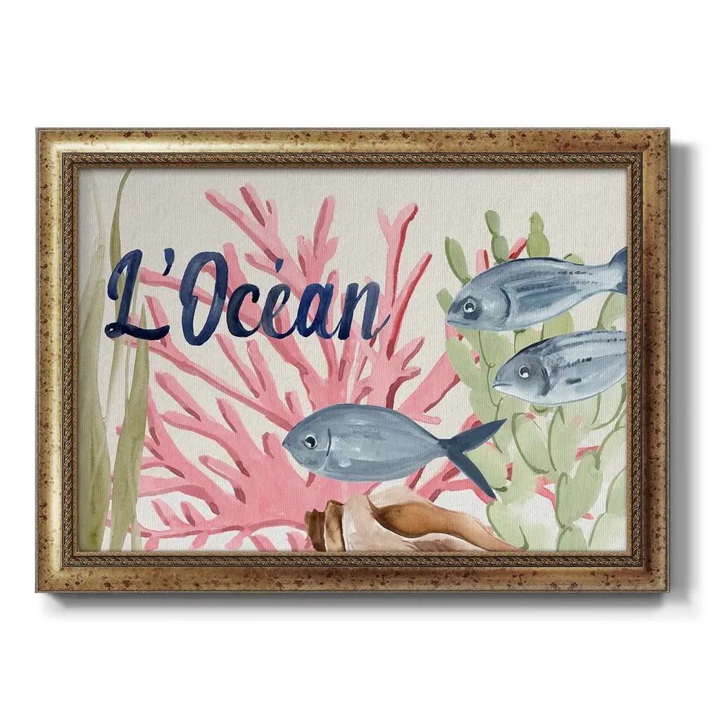 Pastel Mer II Premium Framed Canvas- Ready to Hang A Premium Framed Canvas created to last. Framed in distressed wood and available in an array of sizes and colors Featuring a beveled a solid wood stretcher bar, each piece comes ready to hand 3 SIZES AVAILABLE 16''X20'' - Overall Size 18'X27'' - Overall Size 24''x36'' - Overall Size Each piece is made to order. Each piece comes with hanging hardware. Made in the USA Ready to Hang Giclee Paper Print Acrylic Glass Beveled Matt Board
