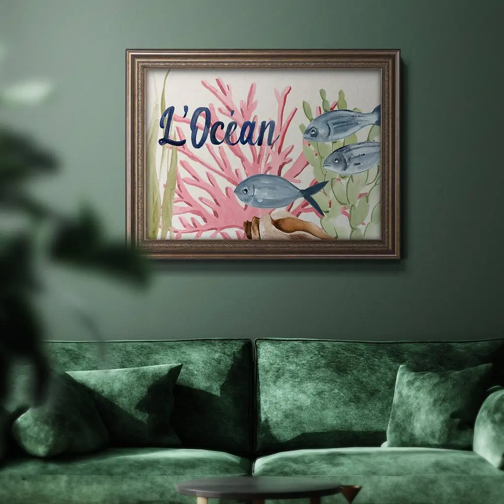 Pastel Mer II Premium Framed Canvas- Ready to Hang A Premium Framed Canvas created to last. Framed in distressed wood and available in an array of sizes and colors Featuring a beveled a solid wood stretcher bar, each piece comes ready to hand 3 SIZES AVAILABLE 16''X20'' - Overall Size 18'X27'' - Overall Size 24''x36'' - Overall Size Each piece is made to order. Each piece comes with hanging hardware. Made in the USA Ready to Hang Giclee Paper Print Acrylic Glass Beveled Matt Board