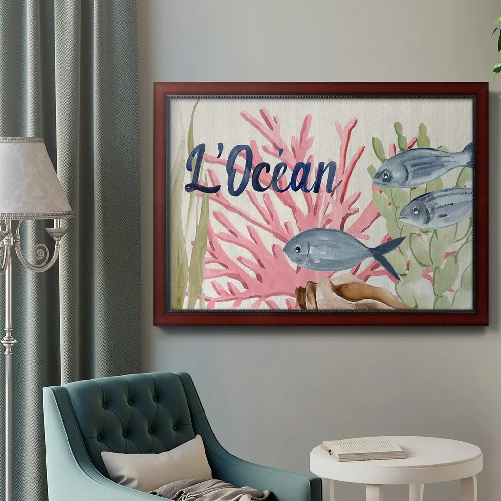 Pastel Mer II Premium Framed Canvas- Ready to Hang A Premium Framed Canvas created to last. Framed in distressed wood and available in an array of sizes and colors Featuring a beveled a solid wood stretcher bar, each piece comes ready to hand 3 SIZES AVAILABLE 16''X20'' - Overall Size 18'X27'' - Overall Size 24''x36'' - Overall Size Each piece is made to order. Each piece comes with hanging hardware. Made in the USA Ready to Hang Giclee Paper Print Acrylic Glass Beveled Matt Board
