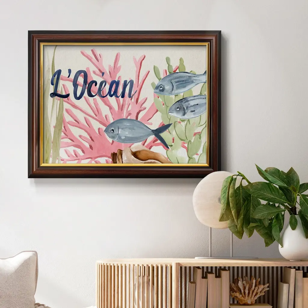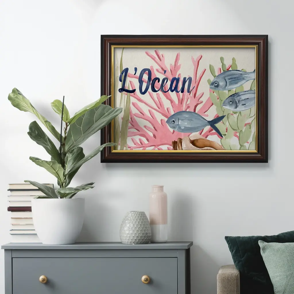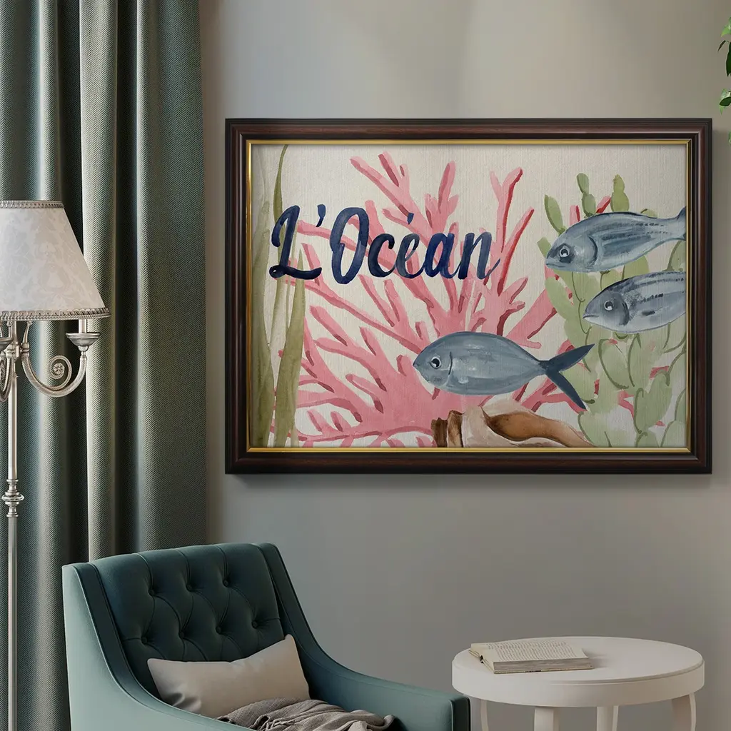 Pastel Mer II Premium Framed Canvas- Ready to Hang A Premium Framed Canvas created to last. Framed in distressed wood and available in an array of sizes and colors Featuring a beveled a solid wood stretcher bar, each piece comes ready to hand 3 SIZES AVAILABLE 16''X20'' - Overall Size 18'X27'' - Overall Size 24''x36'' - Overall Size Each piece is made to order. Each piece comes with hanging hardware. Made in the USA Ready to Hang Giclee Paper Print Acrylic Glass Beveled Matt Board