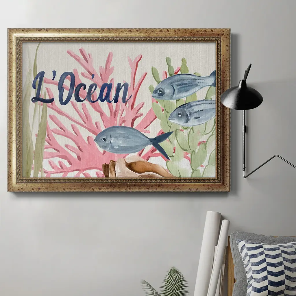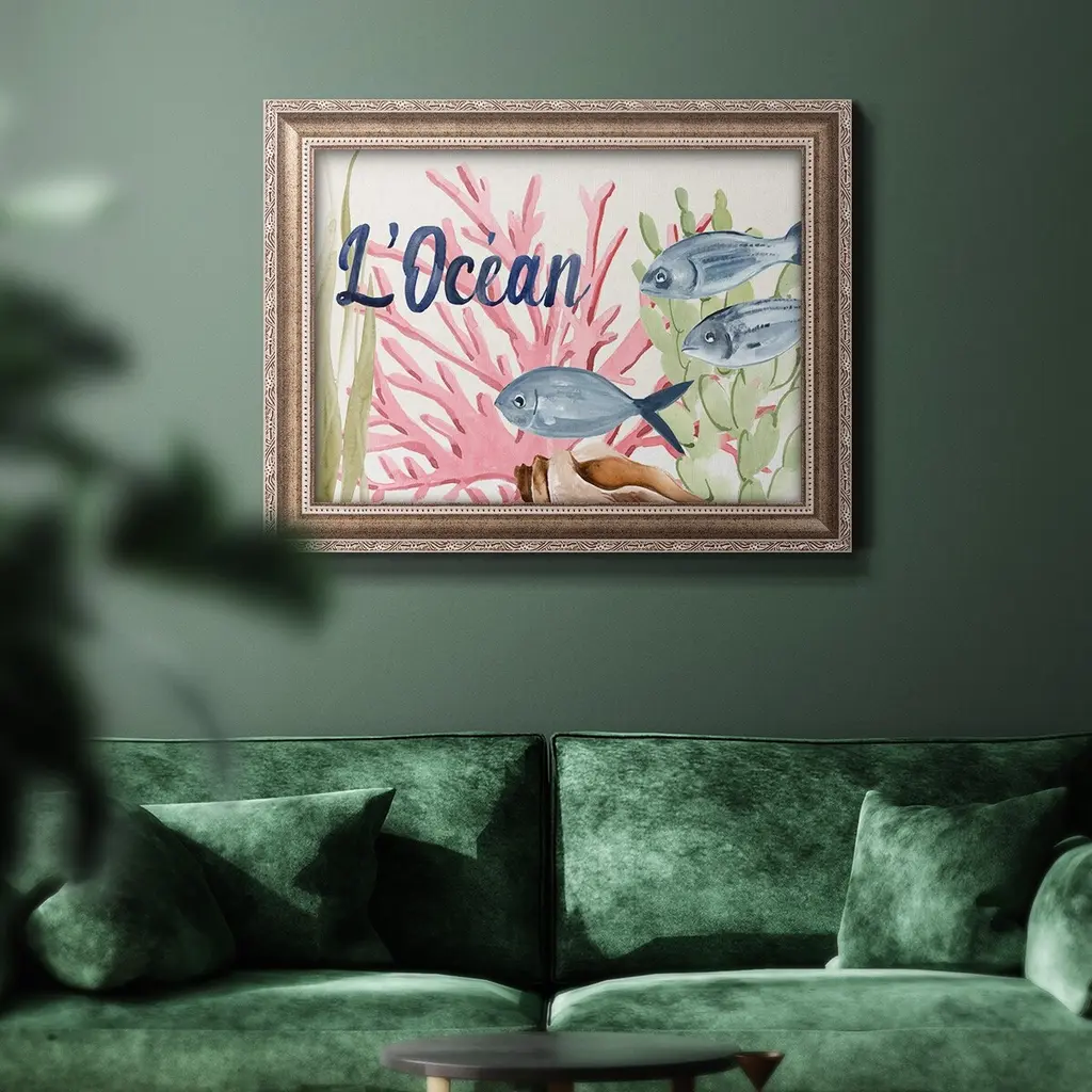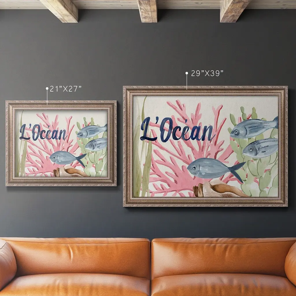 Pastel Mer II Premium Framed Canvas- Ready to Hang A Premium Framed Canvas created to last. Framed in distressed wood and available in an array of sizes and colors Featuring a beveled a solid wood stretcher bar, each piece comes ready to hand 3 SIZES AVAILABLE 16''X20'' - Overall Size 18'X27'' - Overall Size 24''x36'' - Overall Size Each piece is made to order. Each piece comes with hanging hardware. Made in the USA Ready to Hang Giclee Paper Print Acrylic Glass Beveled Matt Board