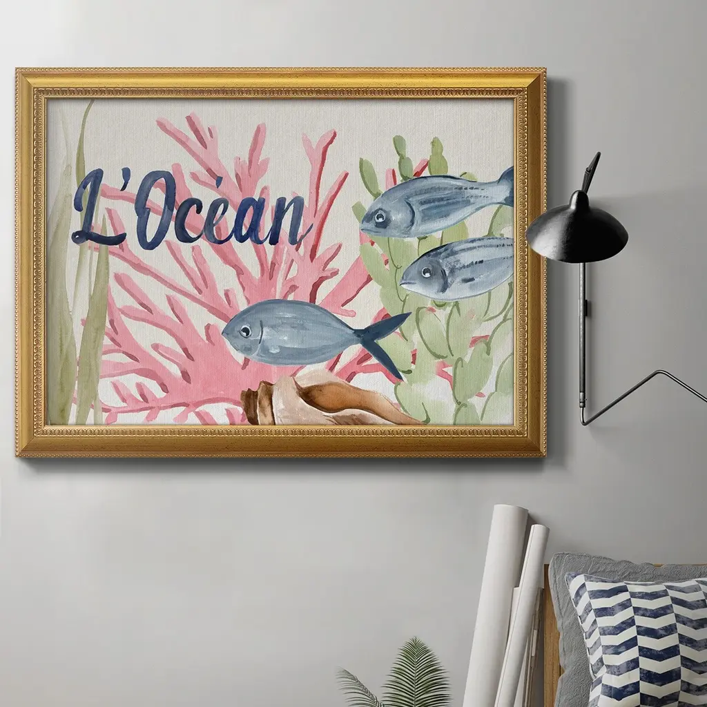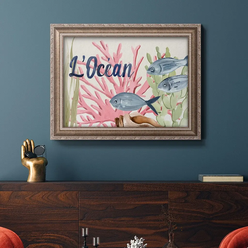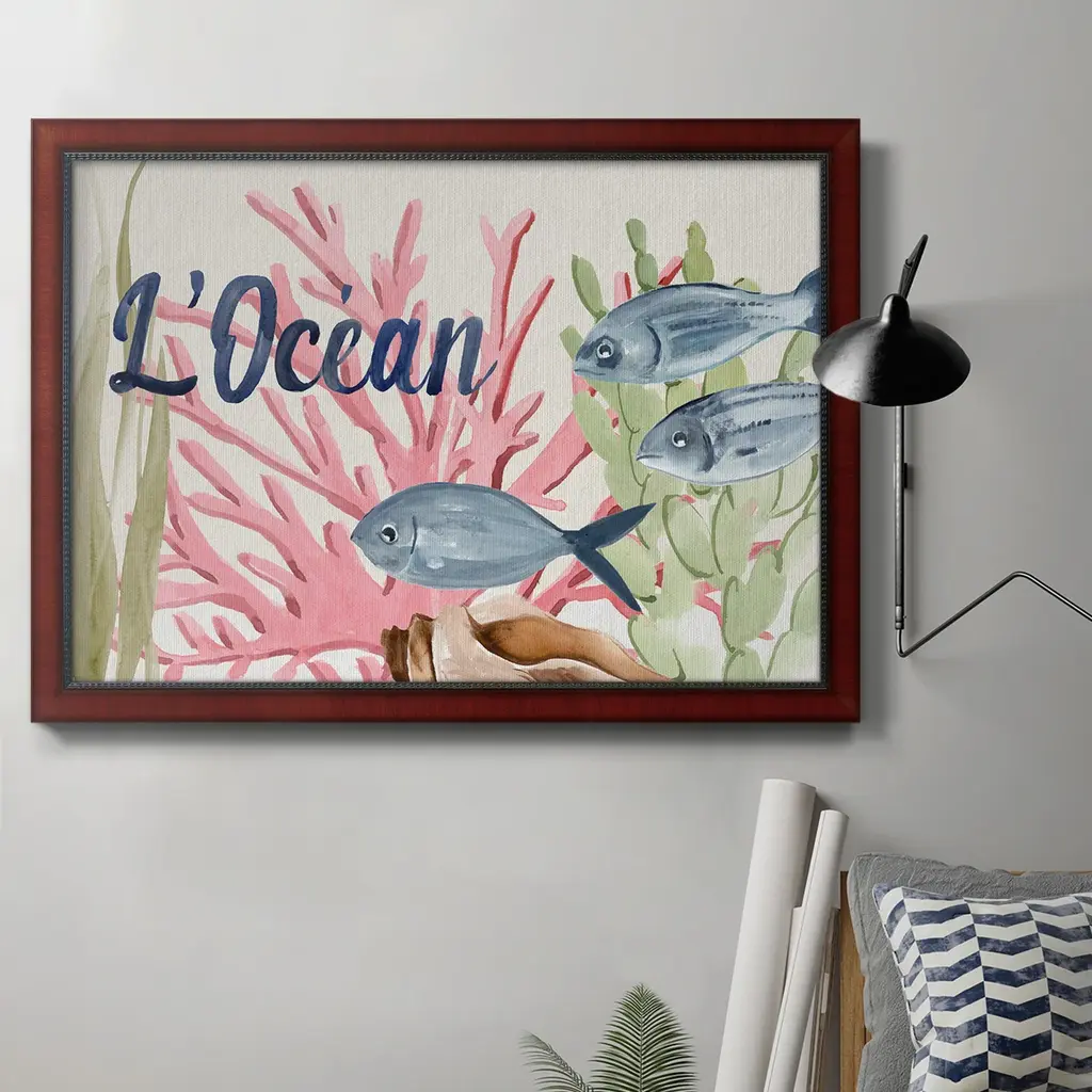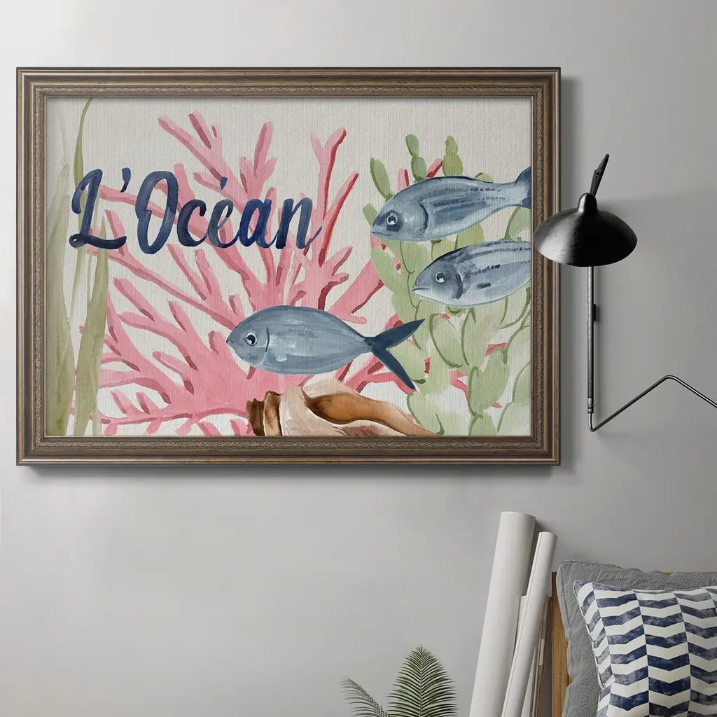 Pastel Mer II Premium Framed Canvas- Ready to Hang A Premium Framed Canvas created to last. Framed in distressed wood and available in an array of sizes and colors Featuring a beveled a solid wood stretcher bar, each piece comes ready to hand 3 SIZES AVAILABLE 16''X20'' - Overall Size 18'X27'' - Overall Size 24''x36'' - Overall Size Each piece is made to order. Each piece comes with hanging hardware. Made in the USA Ready to Hang Giclee Paper Print Acrylic Glass Beveled Matt Board