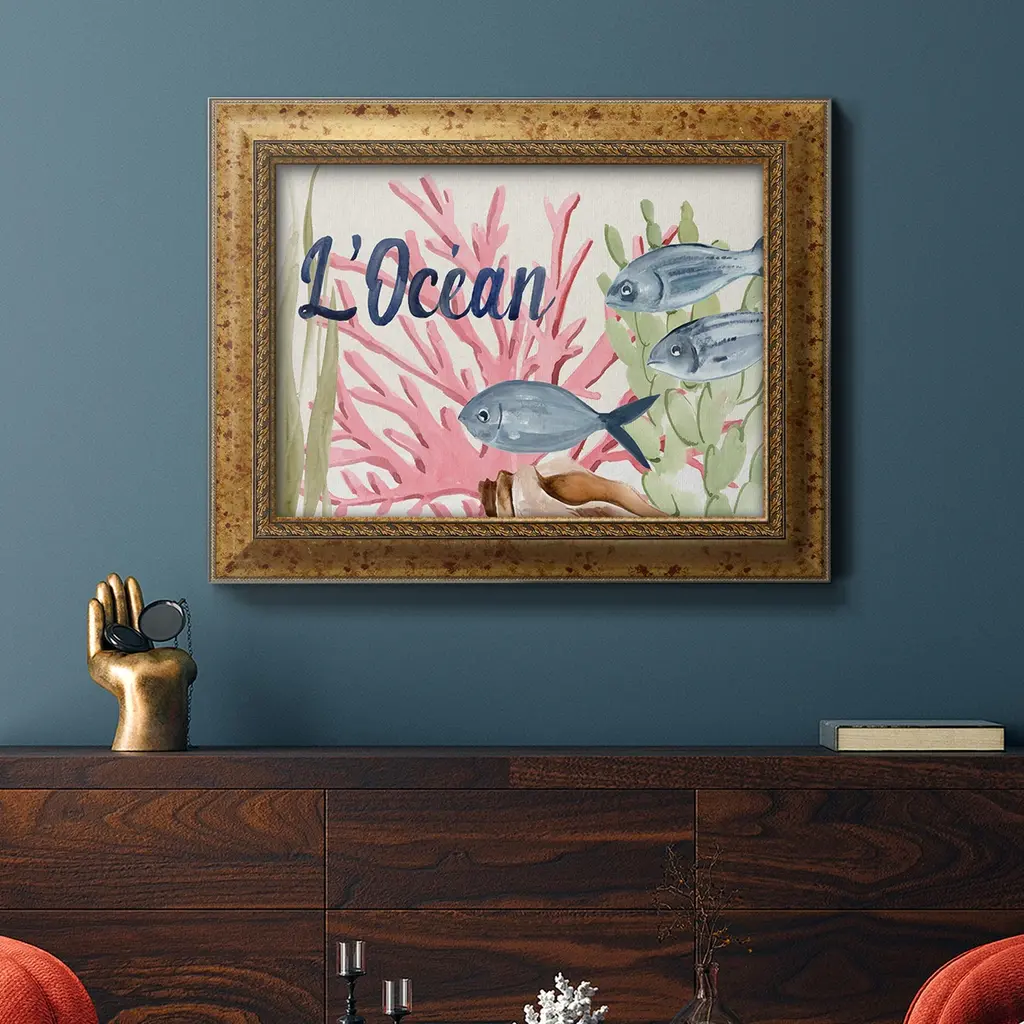 Pastel Mer II Premium Framed Canvas- Ready to Hang A Premium Framed Canvas created to last. Framed in distressed wood and available in an array of sizes and colors Featuring a beveled a solid wood stretcher bar, each piece comes ready to hand 3 SIZES AVAILABLE 16''X20'' - Overall Size 18'X27'' - Overall Size 24''x36'' - Overall Size Each piece is made to order. Each piece comes with hanging hardware. Made in the USA Ready to Hang Giclee Paper Print Acrylic Glass Beveled Matt Board