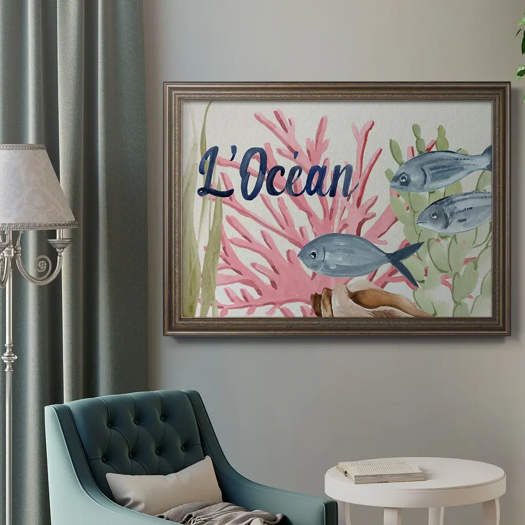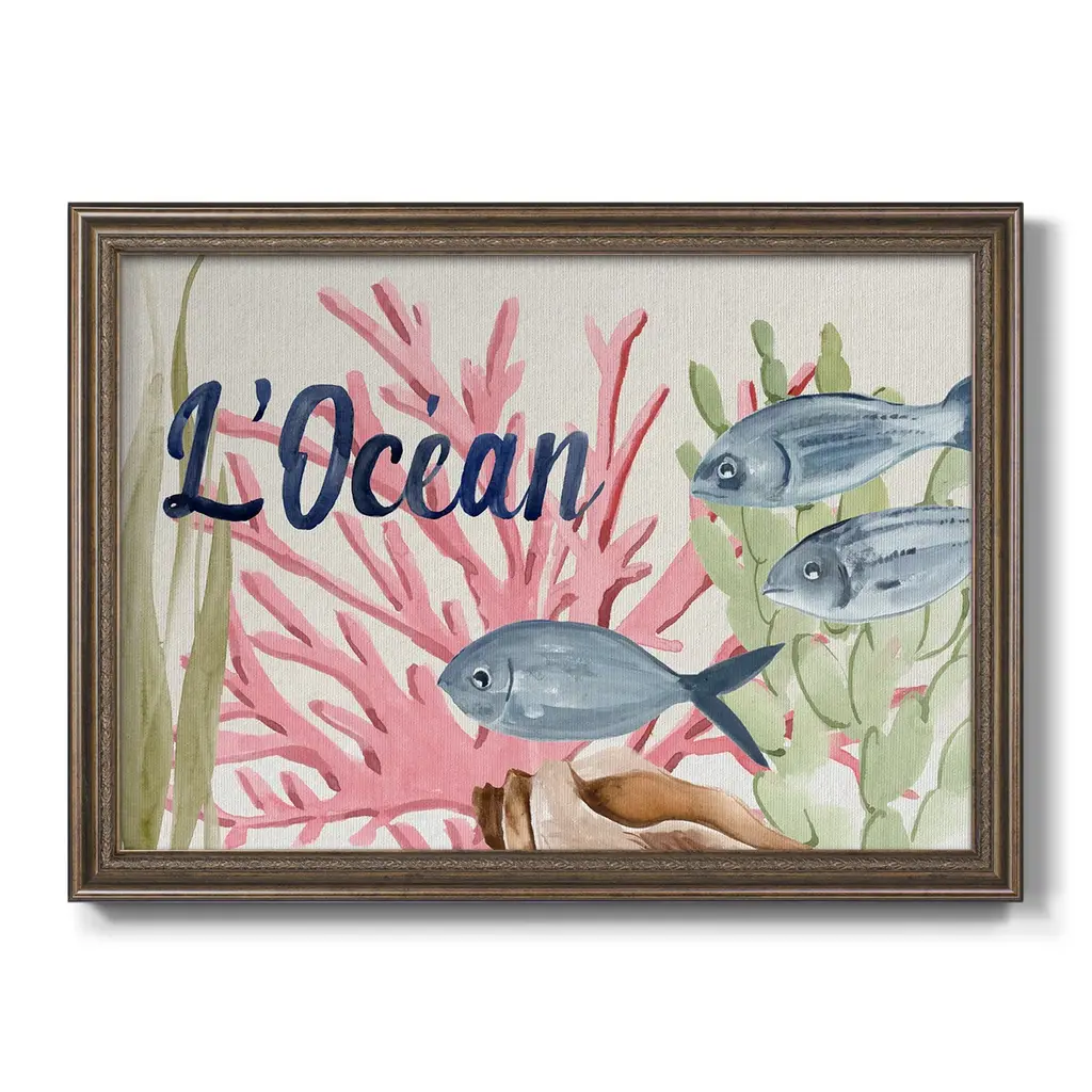 Pastel Mer II Premium Framed Canvas- Ready to Hang A Premium Framed Canvas created to last. Framed in distressed wood and available in an array of sizes and colors Featuring a beveled a solid wood stretcher bar, each piece comes ready to hand 3 SIZES AVAILABLE 16''X20'' - Overall Size 18'X27'' - Overall Size 24''x36'' - Overall Size Each piece is made to order. Each piece comes with hanging hardware. Made in the USA Ready to Hang Giclee Paper Print Acrylic Glass Beveled Matt Board