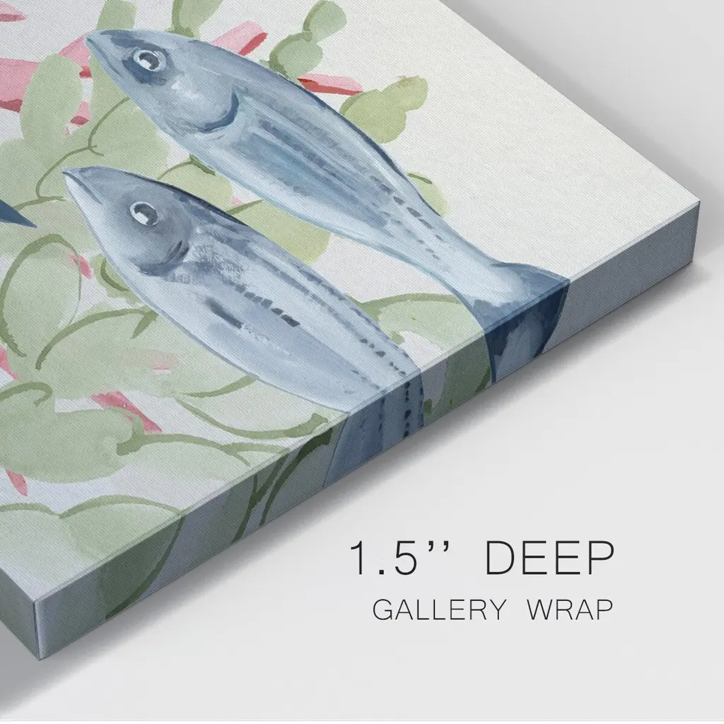 Pastel Mer II Premium Gallery Wrapped Canvas - Ready to Hang A premium hand stretched gallery wrapped canvas print created to last. Featuring a beveled a solid wood stretcher bar, each piece comes ready to hand 6 SIZES AVAILABLE 8''X12'' - Overall Size 12''X18'' - Overall Size 18''X27'' - Overall Size 24''x36'' - Overall Size 32''x48'' - Overall Size 40''x60'' - Overall Size Each piece is made to order. Built to Last Each piece comes ready to hang Solid wood stretcher Fade and Water resistant Made domestically