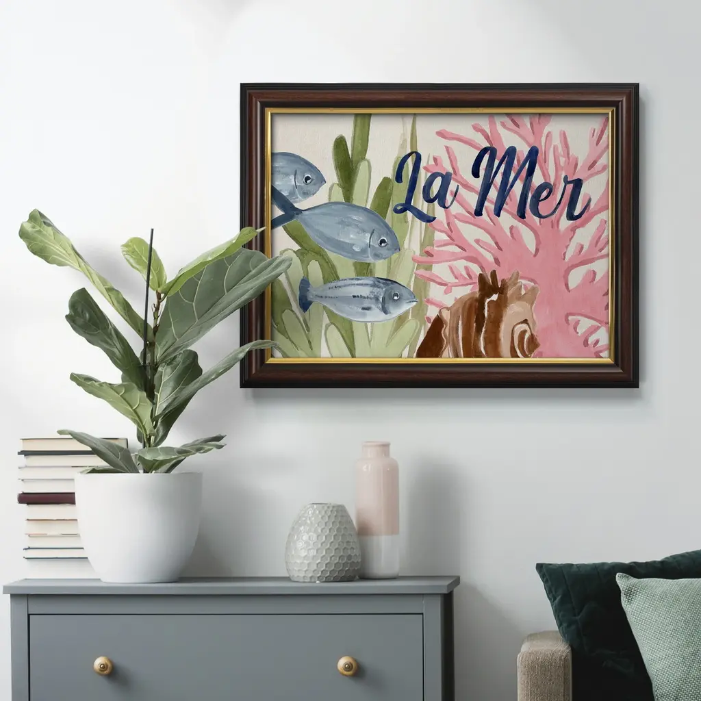 Pastel Mer III Premium Framed Canvas- Ready to Hang A Premium Framed Canvas created to last. Framed in distressed wood and available in an array of sizes and colors Featuring a beveled a solid wood stretcher bar, each piece comes ready to hand 3 SIZES AVAILABLE 16''X20'' - Overall Size 18'X27'' - Overall Size 24''x36'' - Overall Size Each piece is made to order. Each piece comes with hanging hardware. Made in the USA Ready to Hang Giclee Paper Print Acrylic Glass Beveled Matt Board