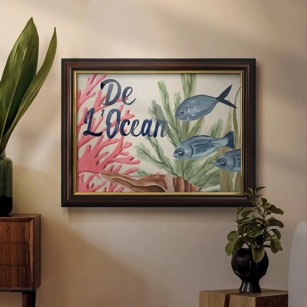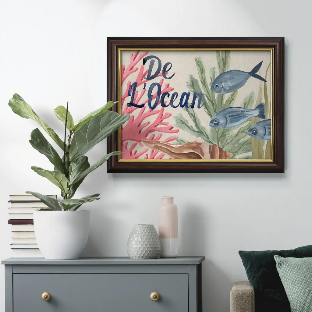 Pastel Mer IV Premium Framed Canvas- Ready to Hang A Premium Framed Canvas created to last. Framed in distressed wood and available in an array of sizes and colors Featuring a beveled a solid wood stretcher bar, each piece comes ready to hand 3 SIZES AVAILABLE 16''X20'' - Overall Size 18'X27'' - Overall Size 24''x36'' - Overall Size Each piece is made to order. Each piece comes with hanging hardware. Made in the USA Ready to Hang Giclee Paper Print Acrylic Glass Beveled Matt Board