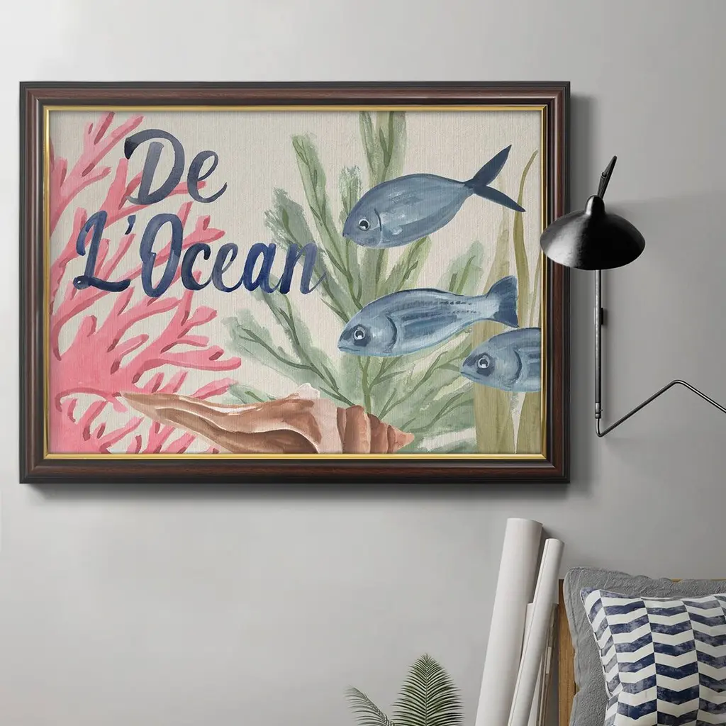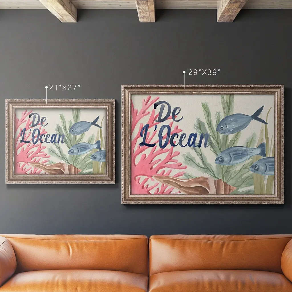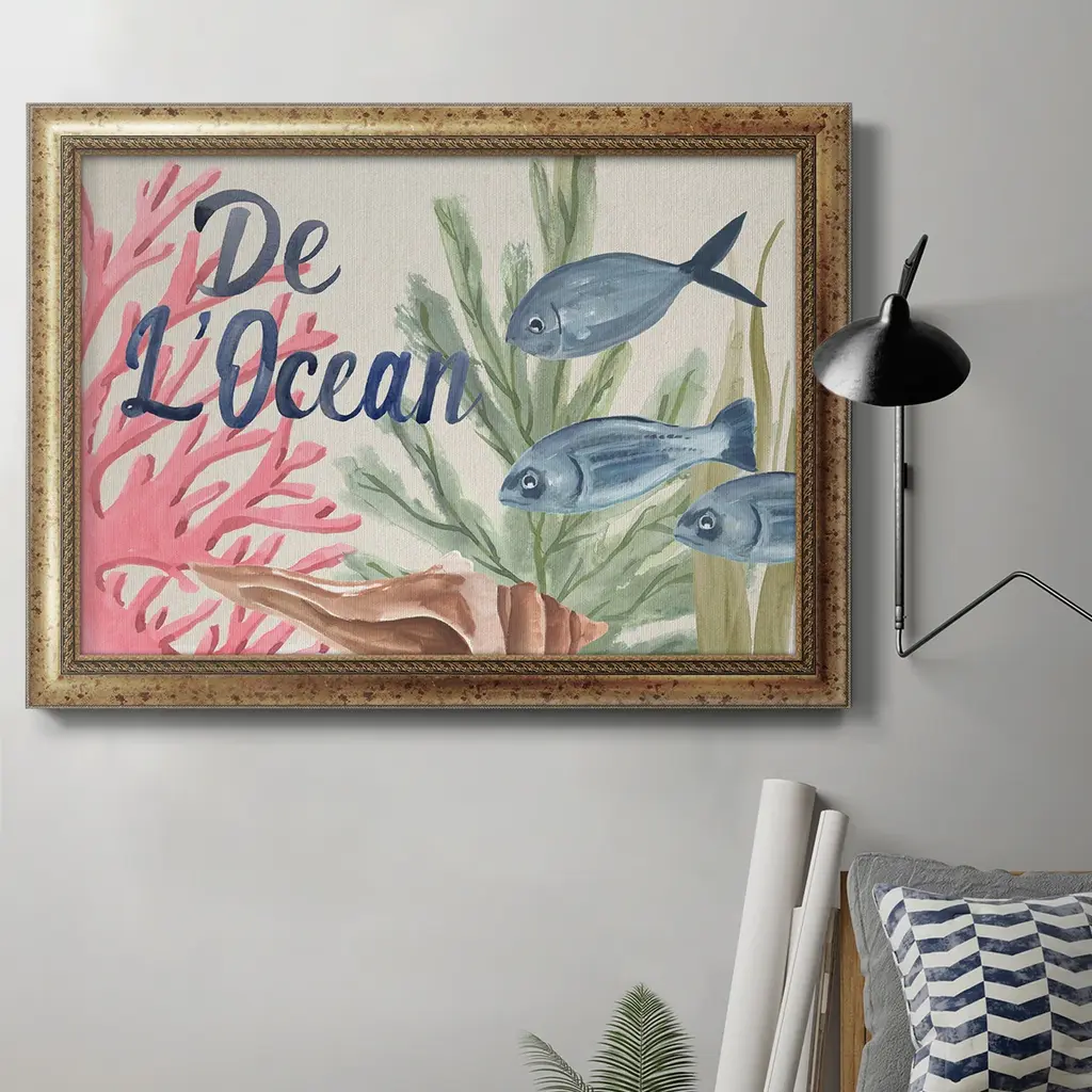 Pastel Mer IV Premium Framed Canvas- Ready to Hang A Premium Framed Canvas created to last. Framed in distressed wood and available in an array of sizes and colors Featuring a beveled a solid wood stretcher bar, each piece comes ready to hand 3 SIZES AVAILABLE 16''X20'' - Overall Size 18'X27'' - Overall Size 24''x36'' - Overall Size Each piece is made to order. Each piece comes with hanging hardware. Made in the USA Ready to Hang Giclee Paper Print Acrylic Glass Beveled Matt Board